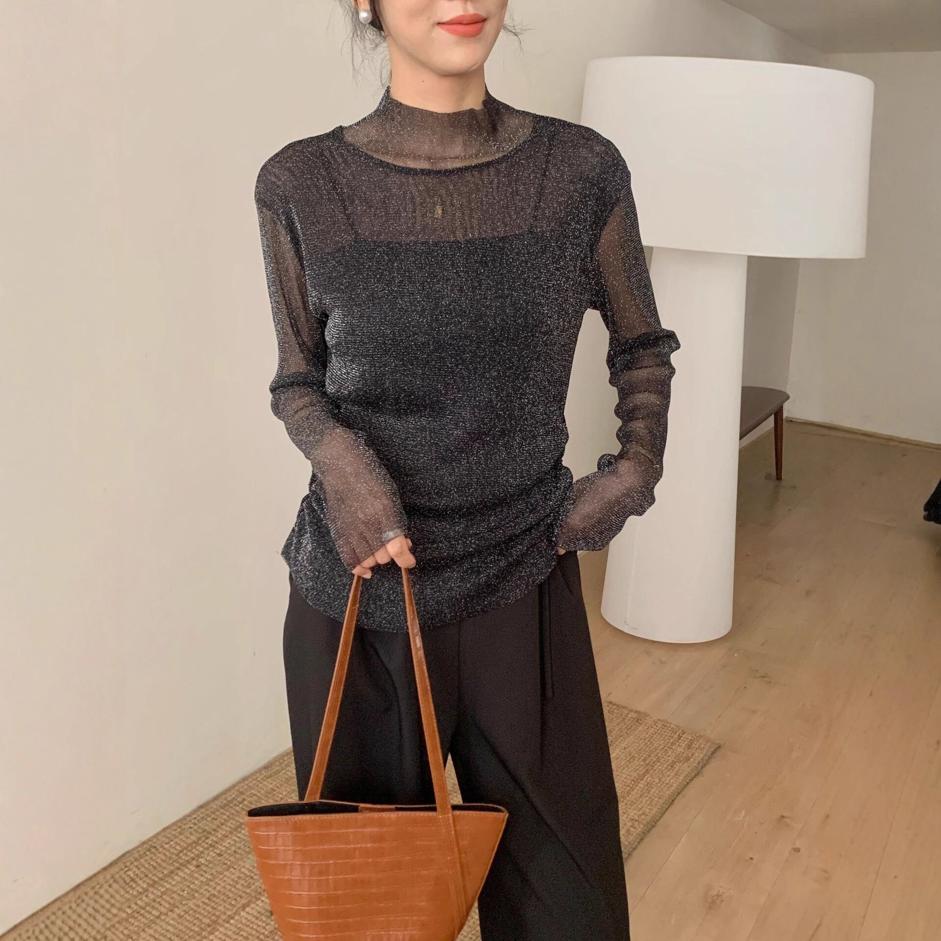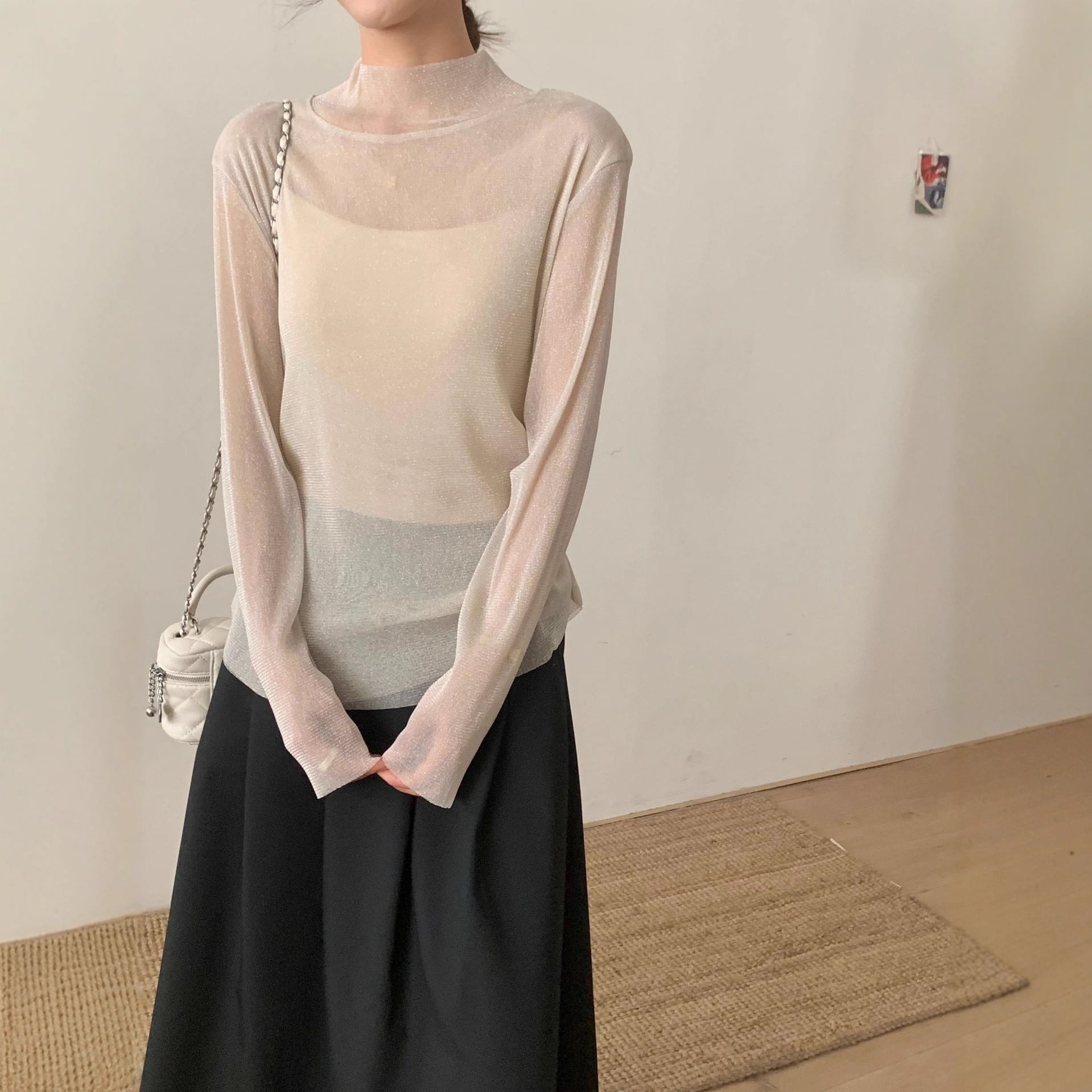 大人のゆるめシルエットのシースルーニットセーター。