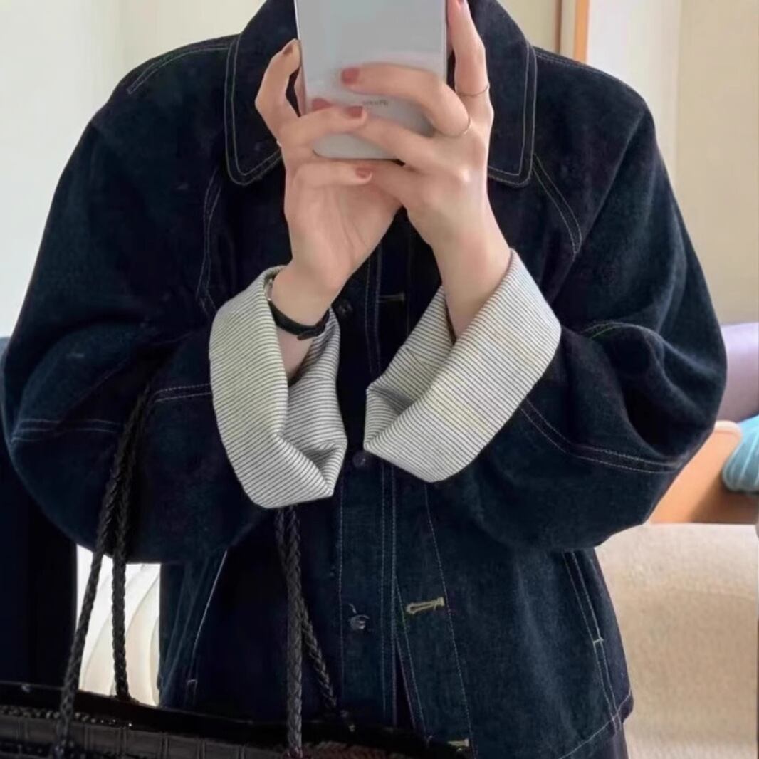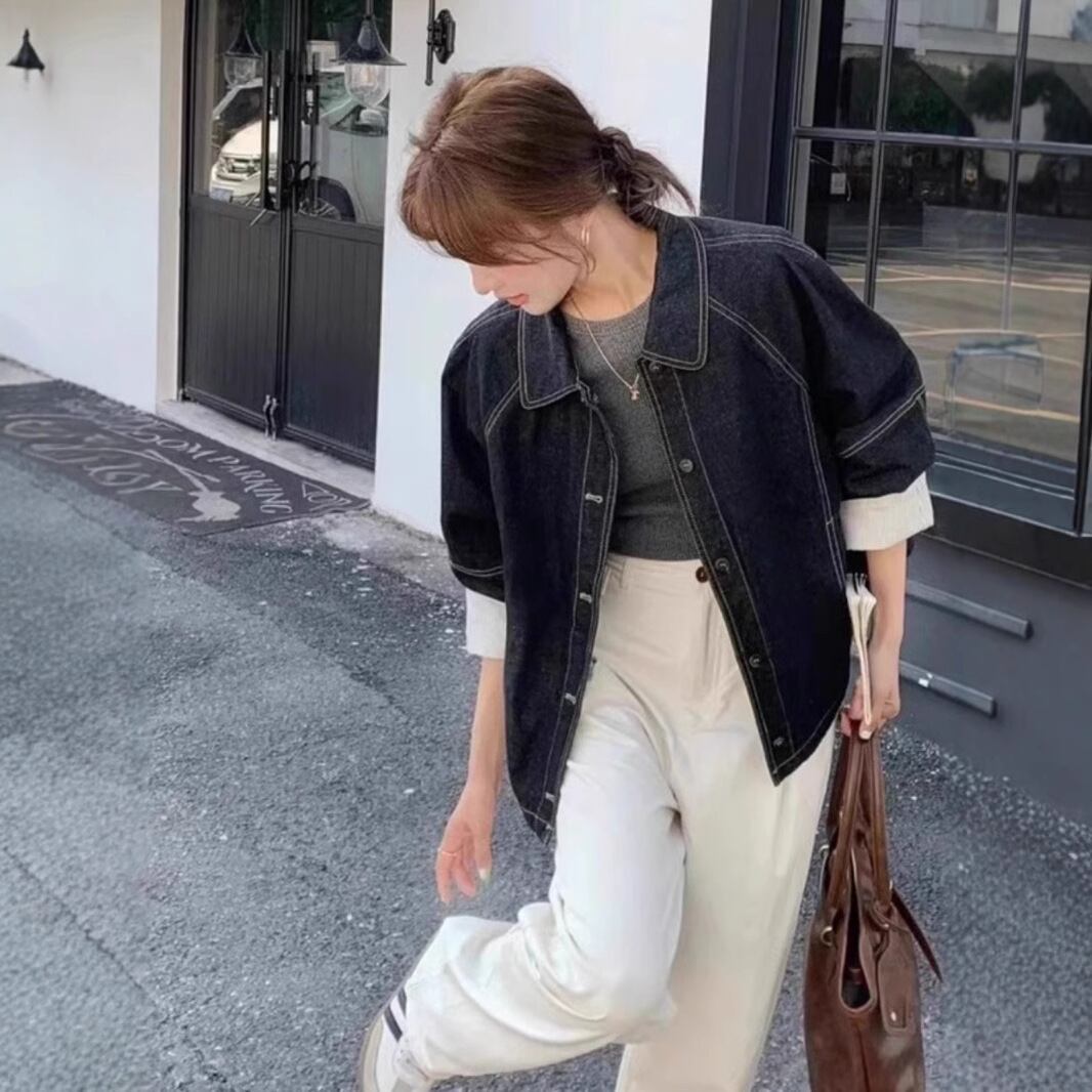 まくったお袖のストライプ柄が大人可愛いデニムジャケット。
