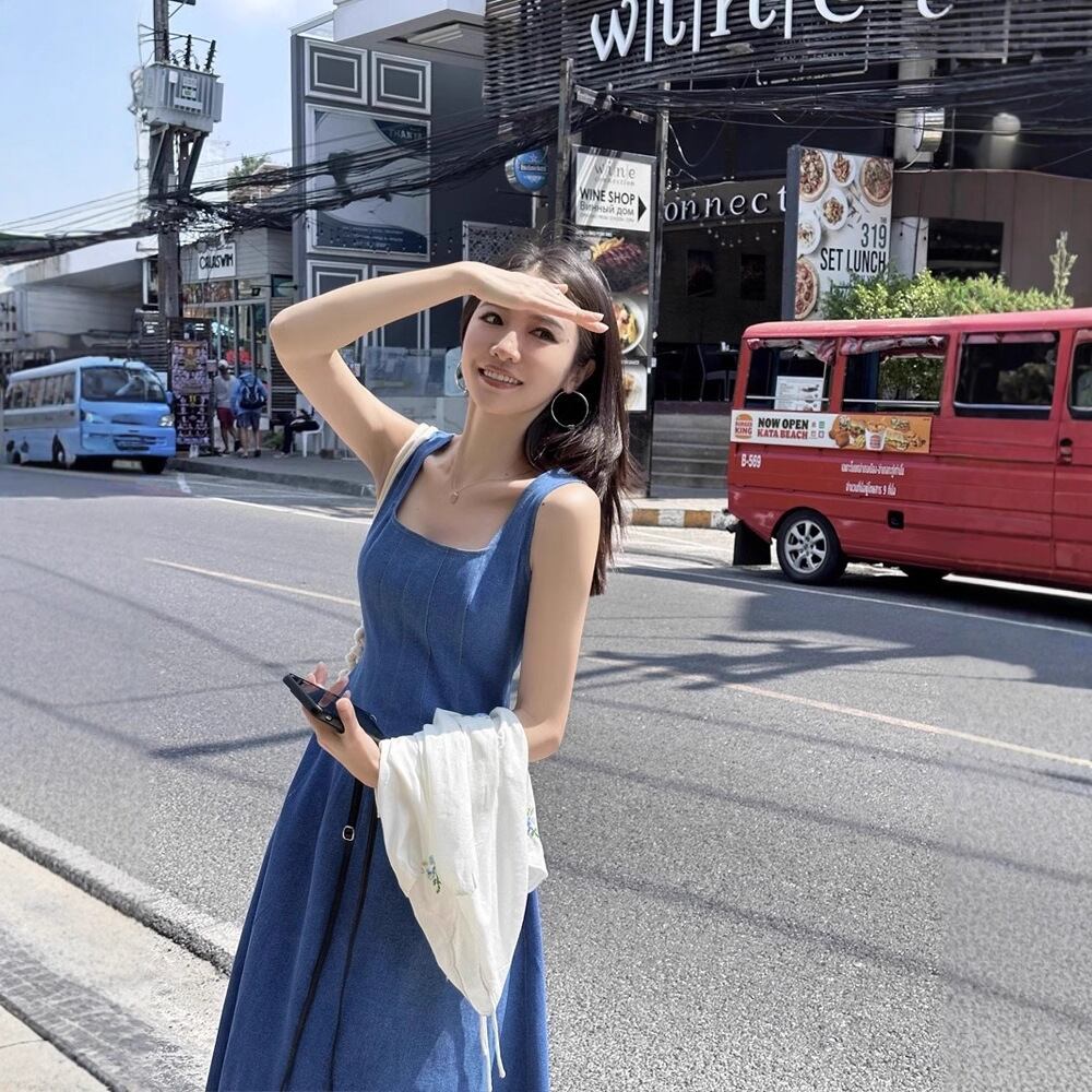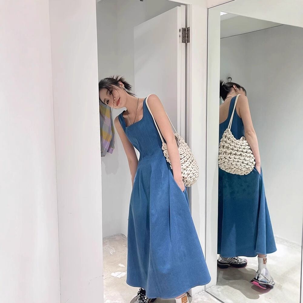 【ワンピース】 ワンピース レディース おしゃれ きれいめ 可愛い フェミニン エレガント 春 夏 秋 20代 30代 40代 50代 ロング ワンピース 春夏 ワンピースドレス 韓国 ワンピースドレス ワンピース デニム ブルー 青 S M L XL