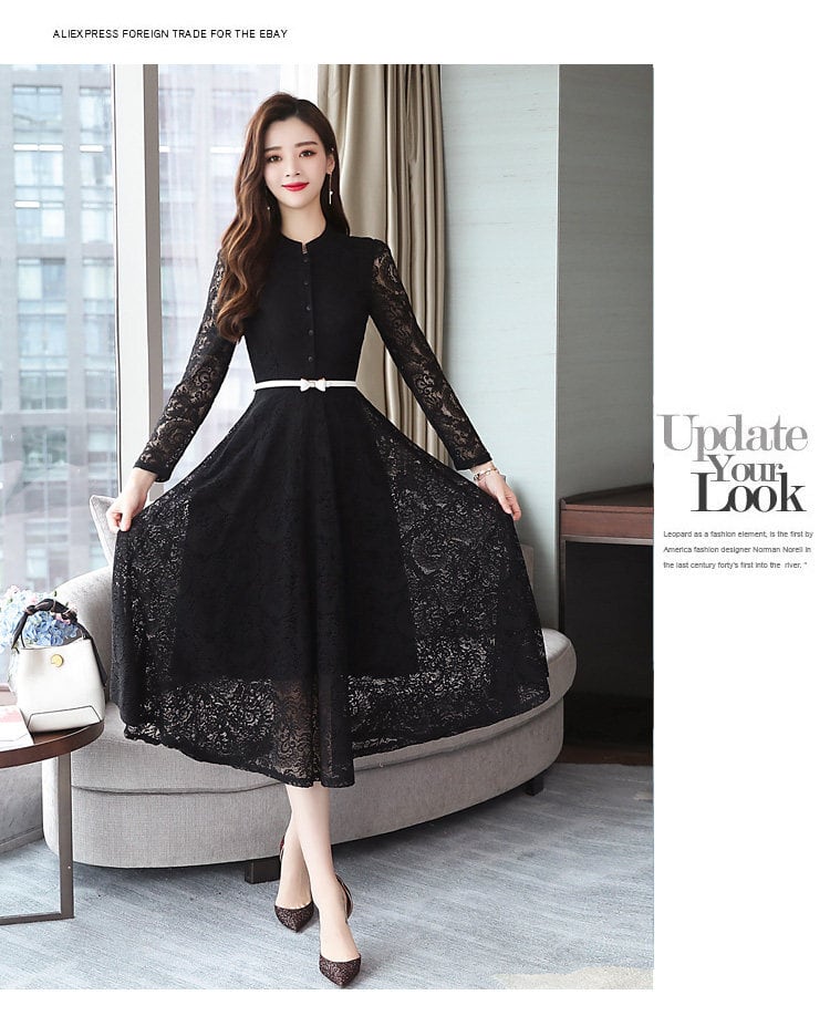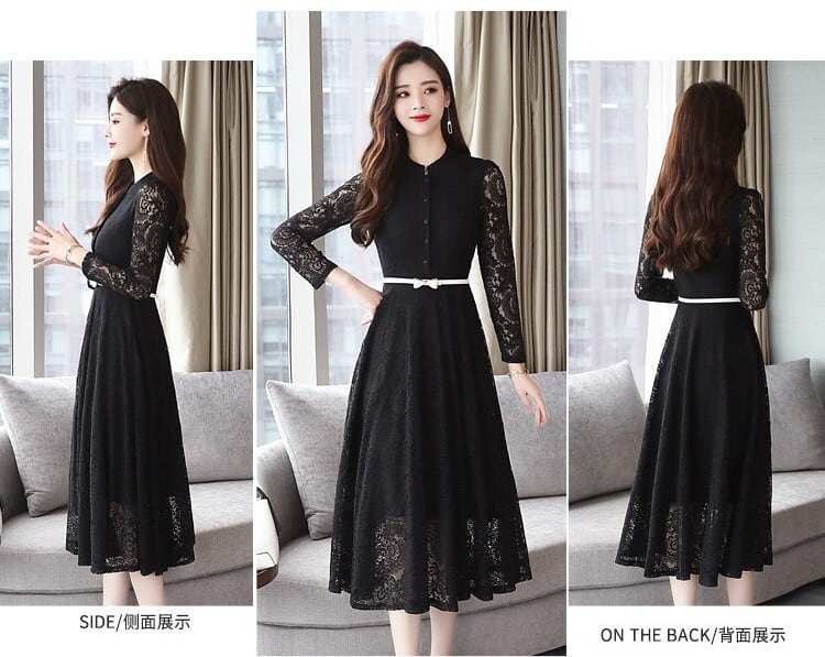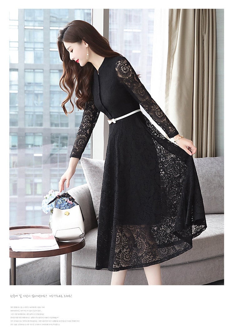 大人エレガントな総レースのパーティードレス。