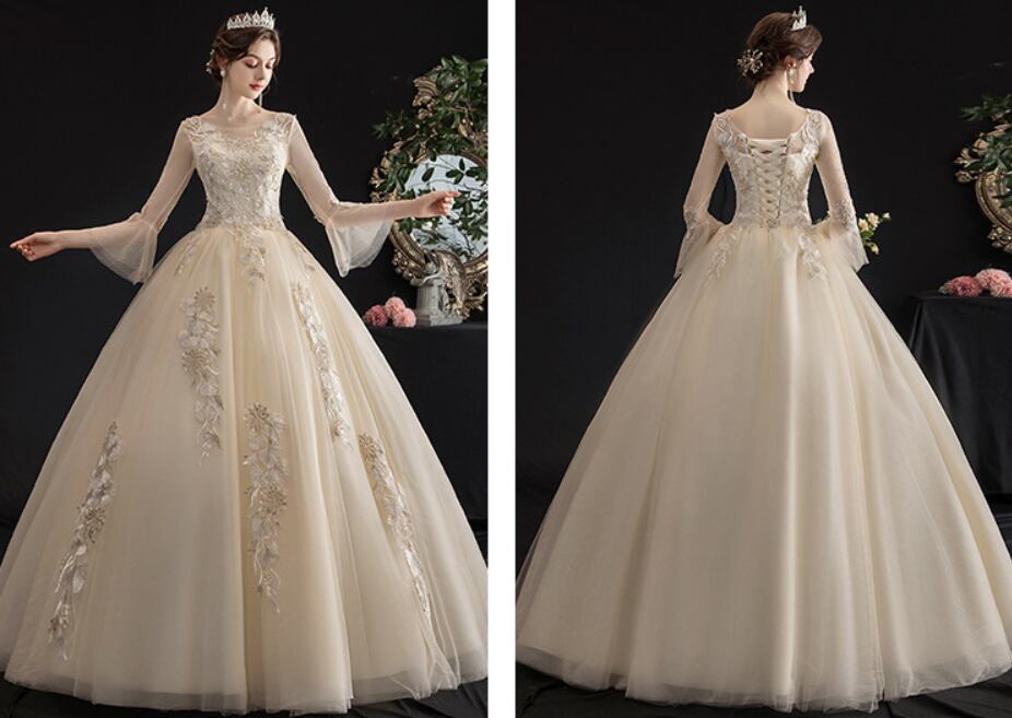 【ウェディングドレス】大きいサイズ ウェディングドレス シンプル 上品 おしゃれ プリンセスライン シャンパン 袖あり 結婚式 挙式 20代 30代 40代 カジュアルウェディング フォトウェディング ドレス 前撮り 後撮り 結婚式写真 ナチュラル ウェディング ガーデンウェディング 少人数ウェディング ホワイト ロング レストランウェディング リゾートウェディング カジュアルウェディング