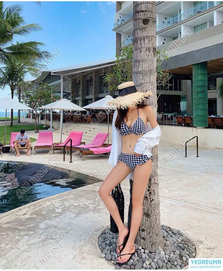 【水着】 水着 ビキニ レディース 韓国 水着 大人 可愛い かわいい おしゃれ 体型カバー 20代 30代 40代 50代 2点セット 水着ビキニ マイクロビキニ セクシー 水着 海 ビーチ プール リゾート スイムウェア ギンガムチェック ブラック 黒 M L XL