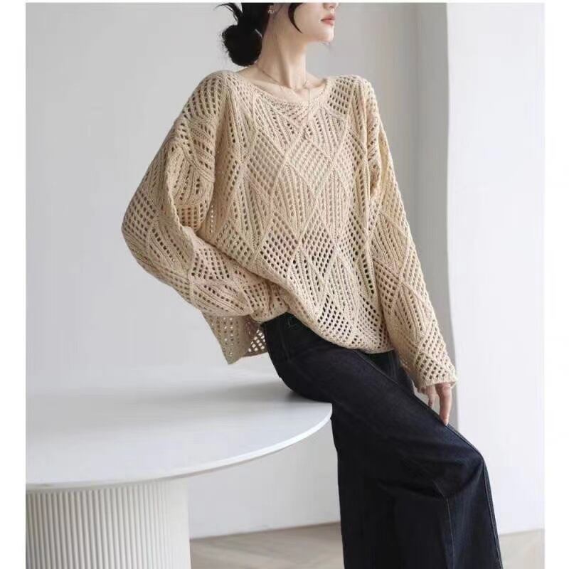 大人のゆるめメッシュニットセーター。