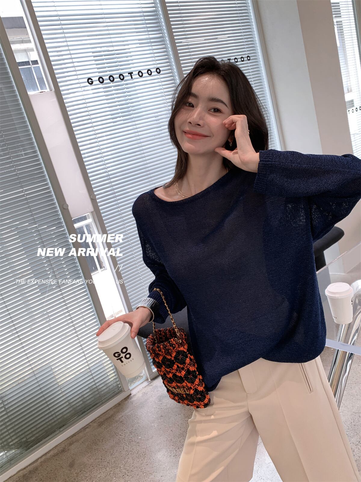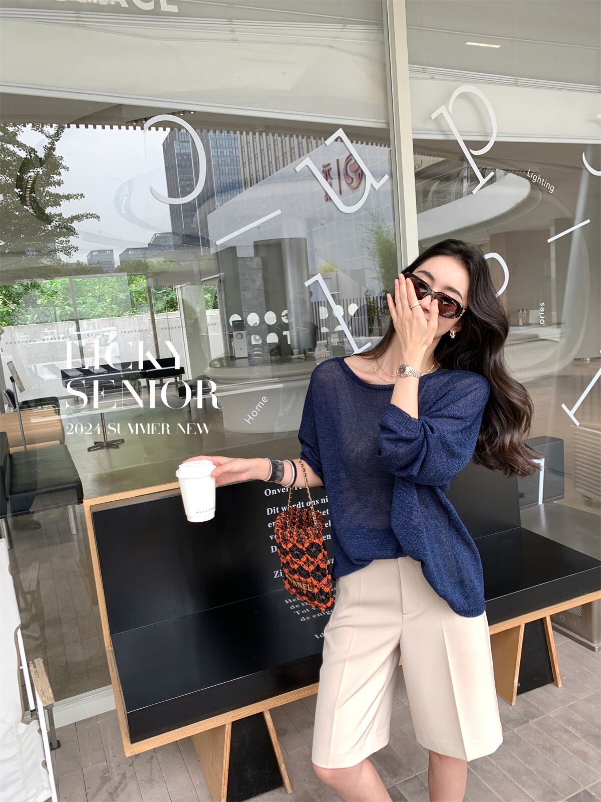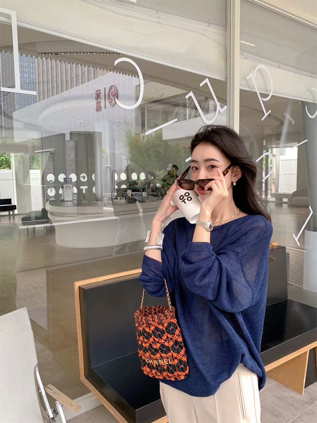インナーにキャミソールや見せブラを重ねて透け感を楽しんで。