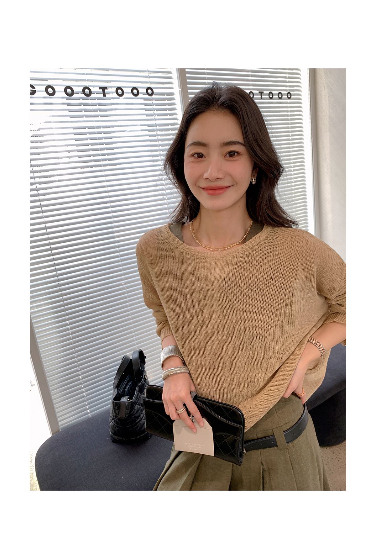 大人のゆるめリネン素材のニットセーター。