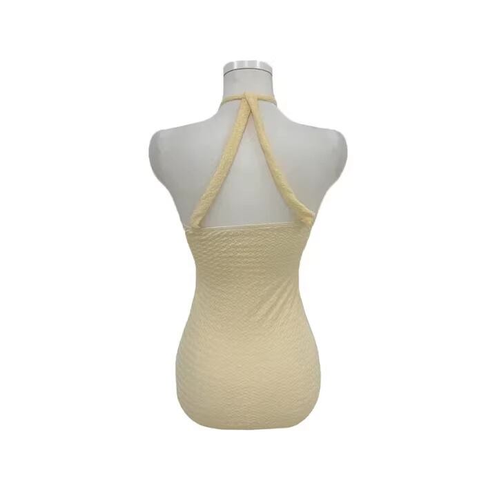 バストのクロスストラップがセクシーなワンピース水着。