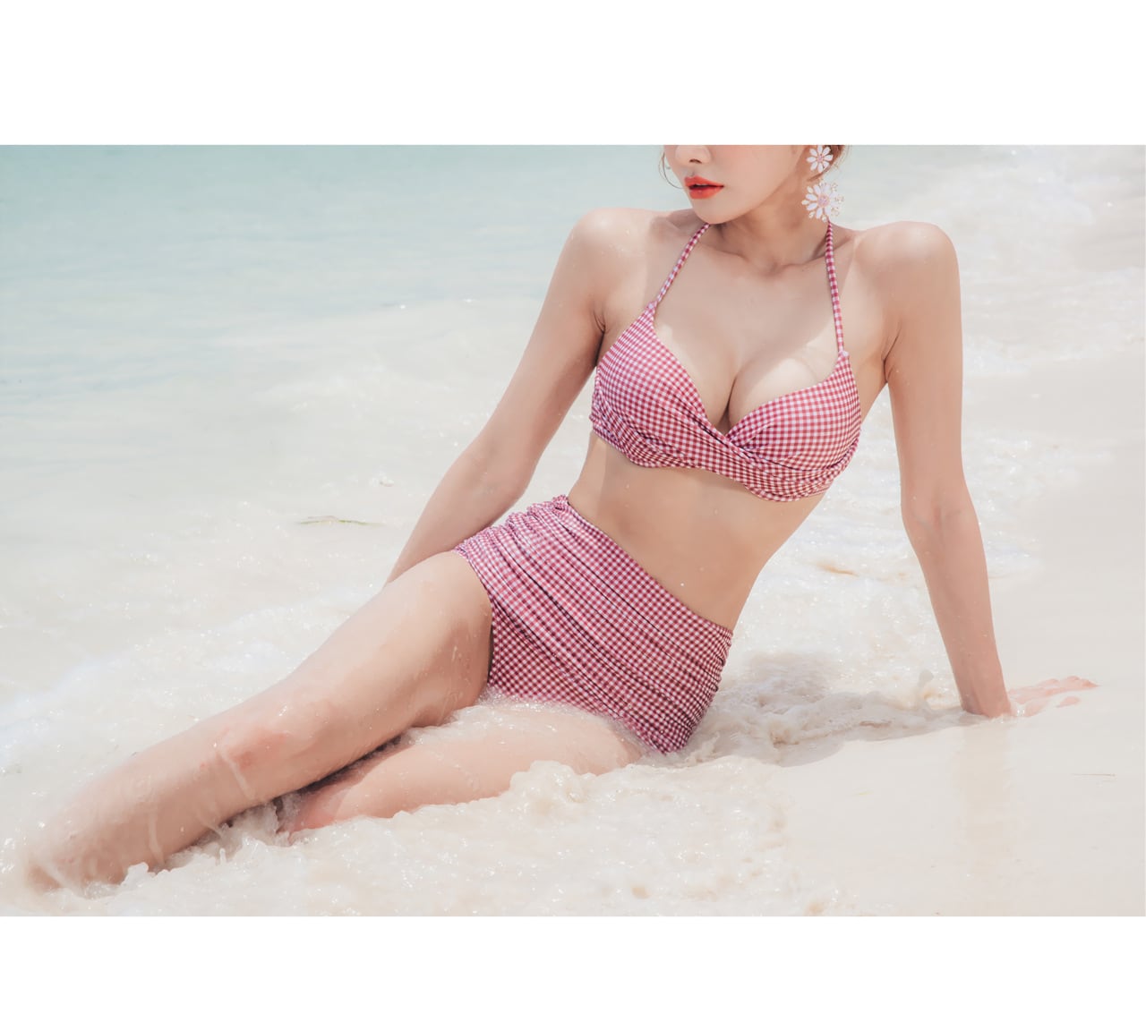 大人可愛いクロスデザインのギンガムチェック柄ビキニ。