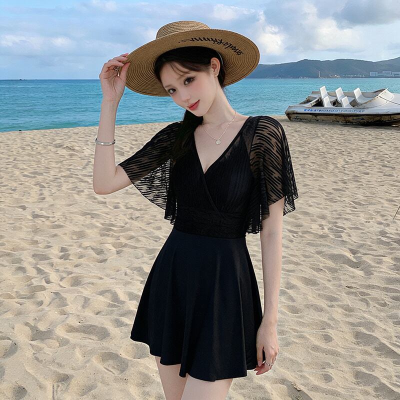 【水着】 ワンピース 水着 韓国 レディース 体型カバー 水着 可愛い かわいい おしゃれ 水着 20代 30代 40代 50代 オールインワン 水着 ぽっちゃり 水着 ママ 着痩せ 海 ビーチ プール リゾート ブラック 黒 M L XL