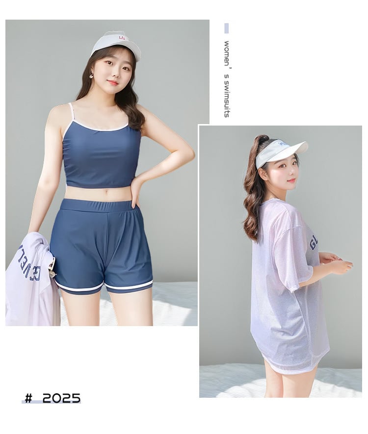 【水着】大きいサイズ 韓国 水着 タンキニ 体型カバー ラッシュガード レディース 水着 3点セット 可愛い かわいい おしゃれ 20代 30代 40代 50代 ママ 水着 パンツ 海 ビーチ プール リゾート スイムウェア ブルー 青 ブラック 黒 パープル 紫 M L XL 2XL 3XL