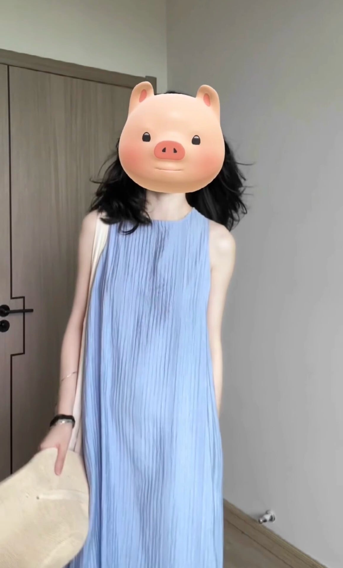ノースリーブで二の腕を大胆に魅せることによって華奢な印象に。