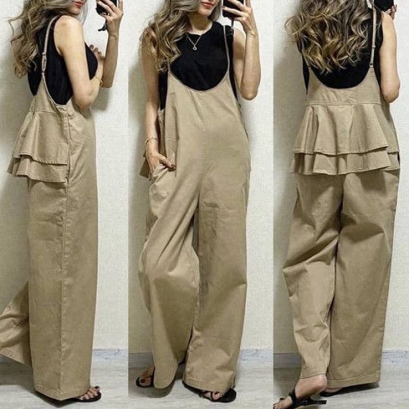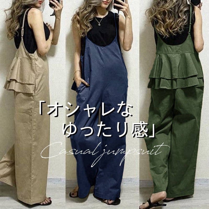 バックのティアードフリルが大人可愛いサロペット。