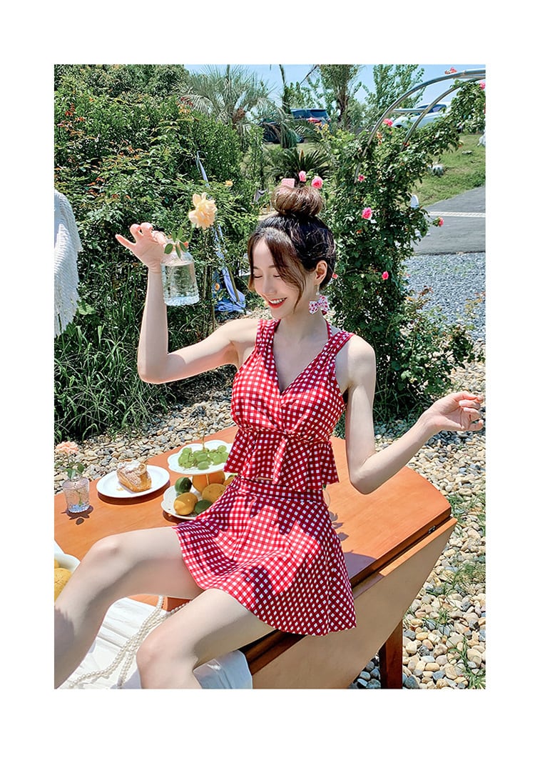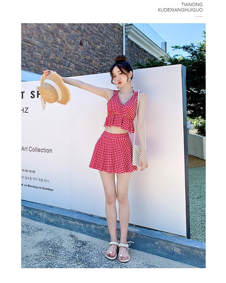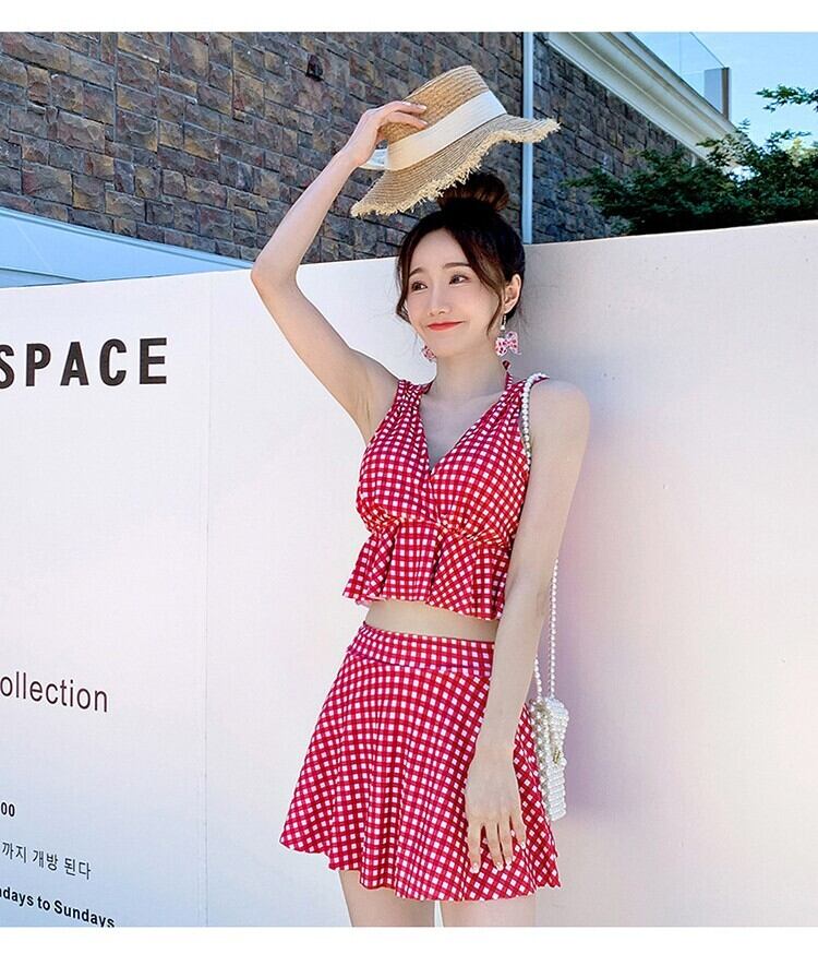 【水着】 水着 ビキニ レディース 韓国 水着 大人 可愛い かわいい おしゃれ 体型カバー 20代 30代 40代 50代 2点セット 水着ビキニ マイクロビキニ セクシー 水着 海 ビーチ プール リゾート スイムウェア ギンガムチェック レッド 赤 ブラック 黒 M L XL