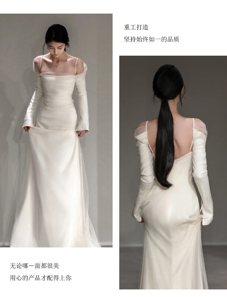 【ウェディングドレス】大きいサイズ 小さいサイズ ウェディングドレス シンプル 上品 おしゃれ フィッシュテール ホワイト 白 袖あり 結婚式 挙式 20代 30代 40代 カジュアルウェディング フォトウェディング ドレス 前撮り 後撮り 結婚式写真 ナチュラル ウェディング ガーデンウェディング 少人数ウェディング ホワイト ロング レストランウェディング リゾートウェディング カジュアルウェディング