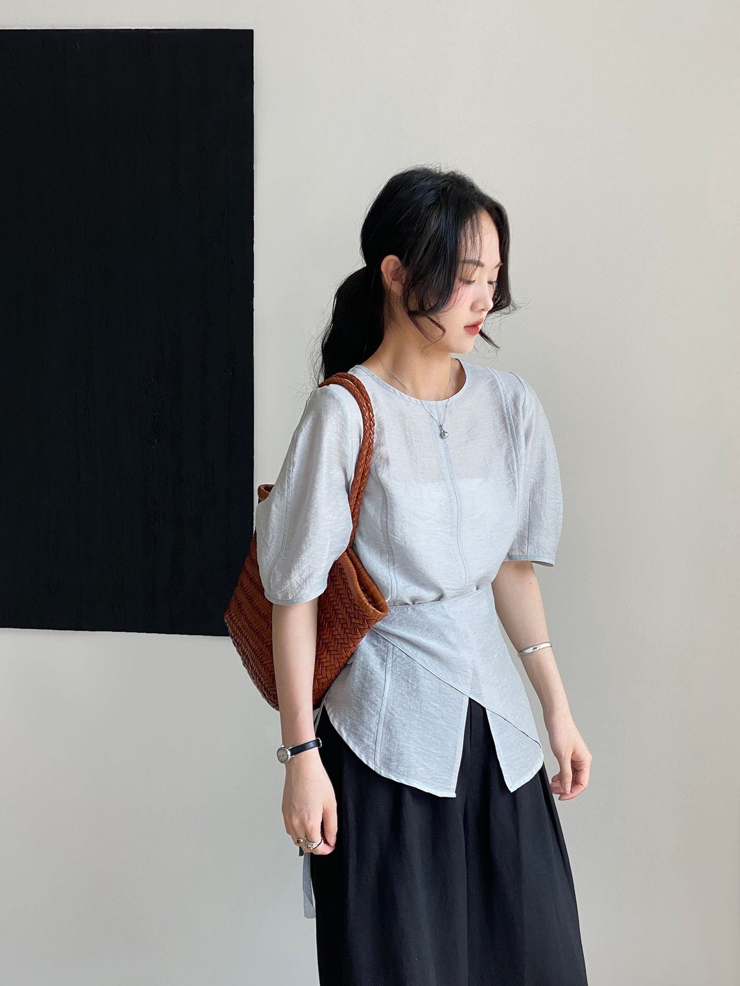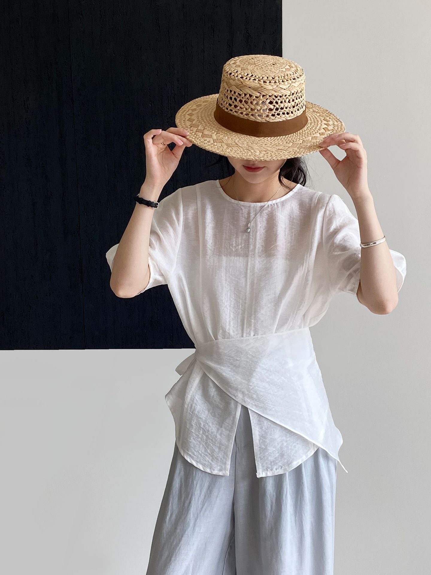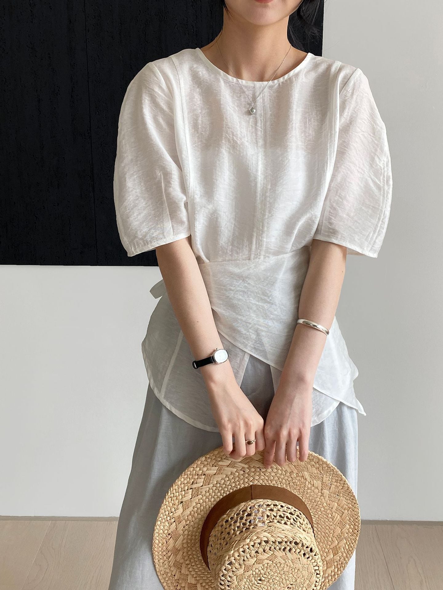 【ブラウス】ブラウス レディース 大人 可愛い トップス シャツ ブラウス 韓国 ブラウス 春 夏 秋 20代 30代 40代 50代 シンプル オフィス レディース フォーマル 体型カバー きれいめ 半袖 ブルー 青 ホワイト 白 M L