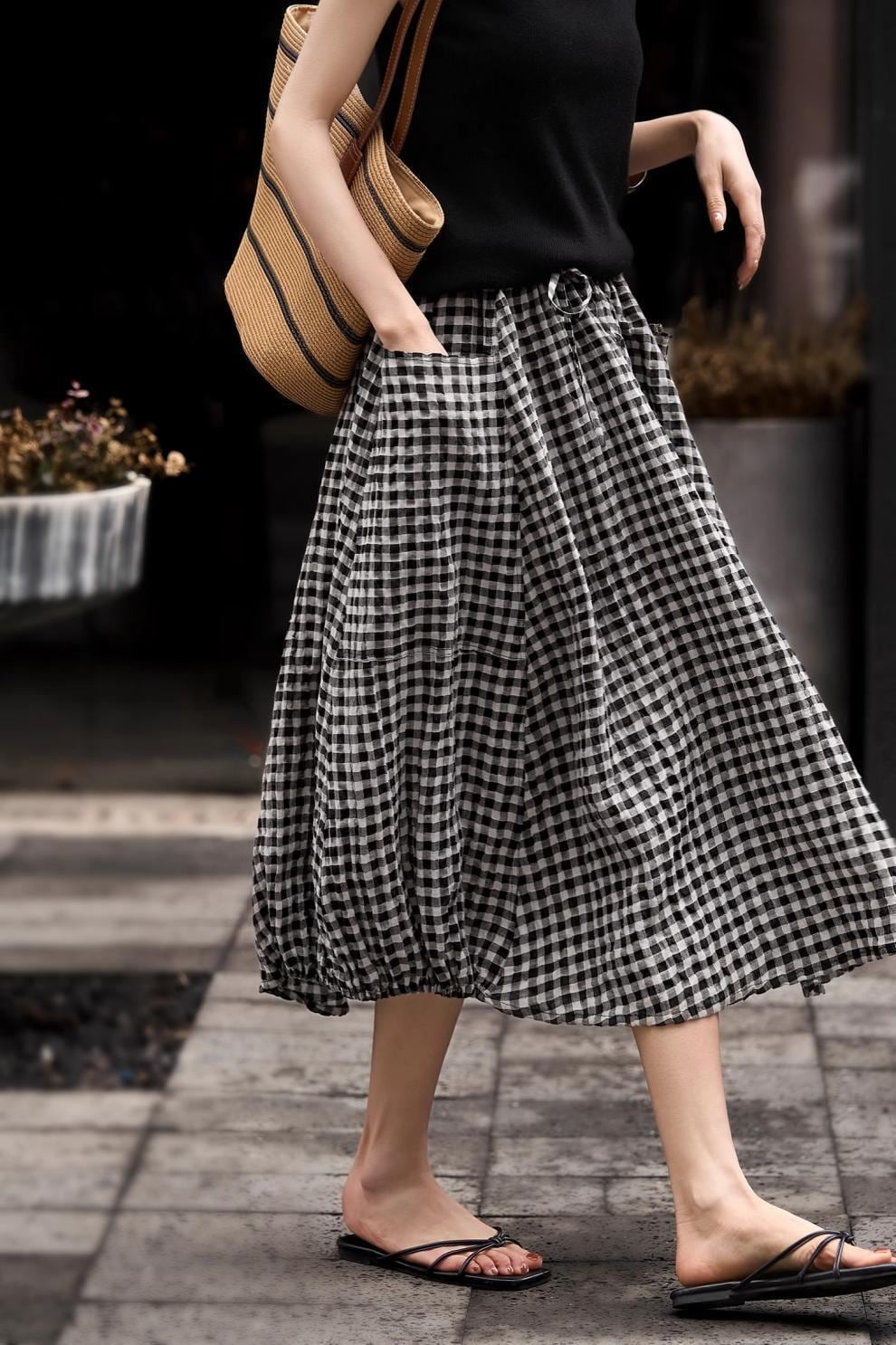【スカート】 フレア スカート レディース きれいめ 可愛い ハイウエスト ロングスカート 春 夏 秋 冬 20代 30代 40代 フレアスカート ロング スカート ギンガムチェック 青 ブラック 黒 S M L XL