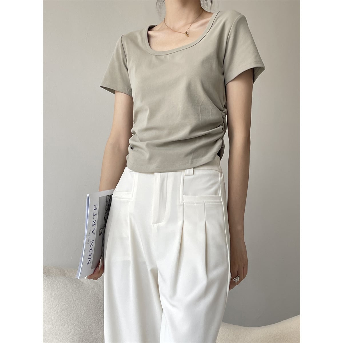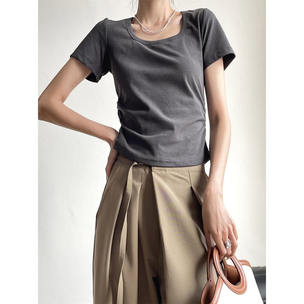 ボディにフィットしたシンプルなカットソー。