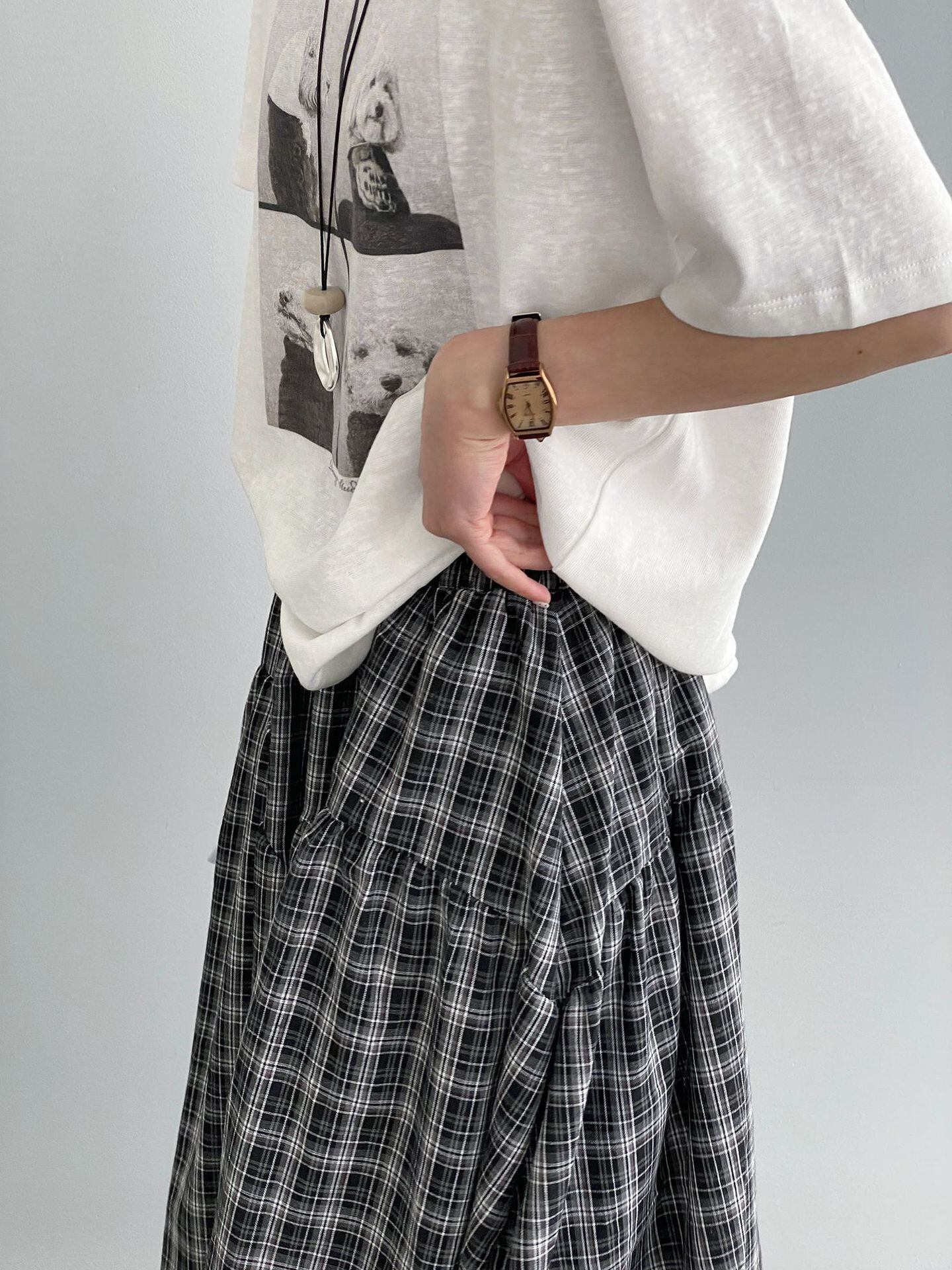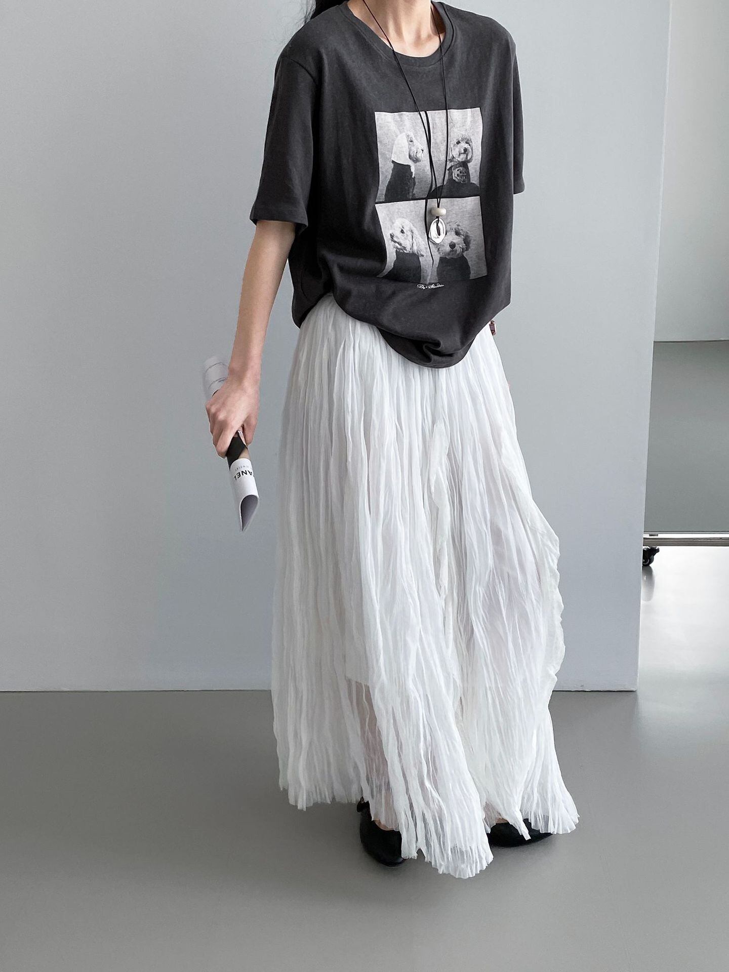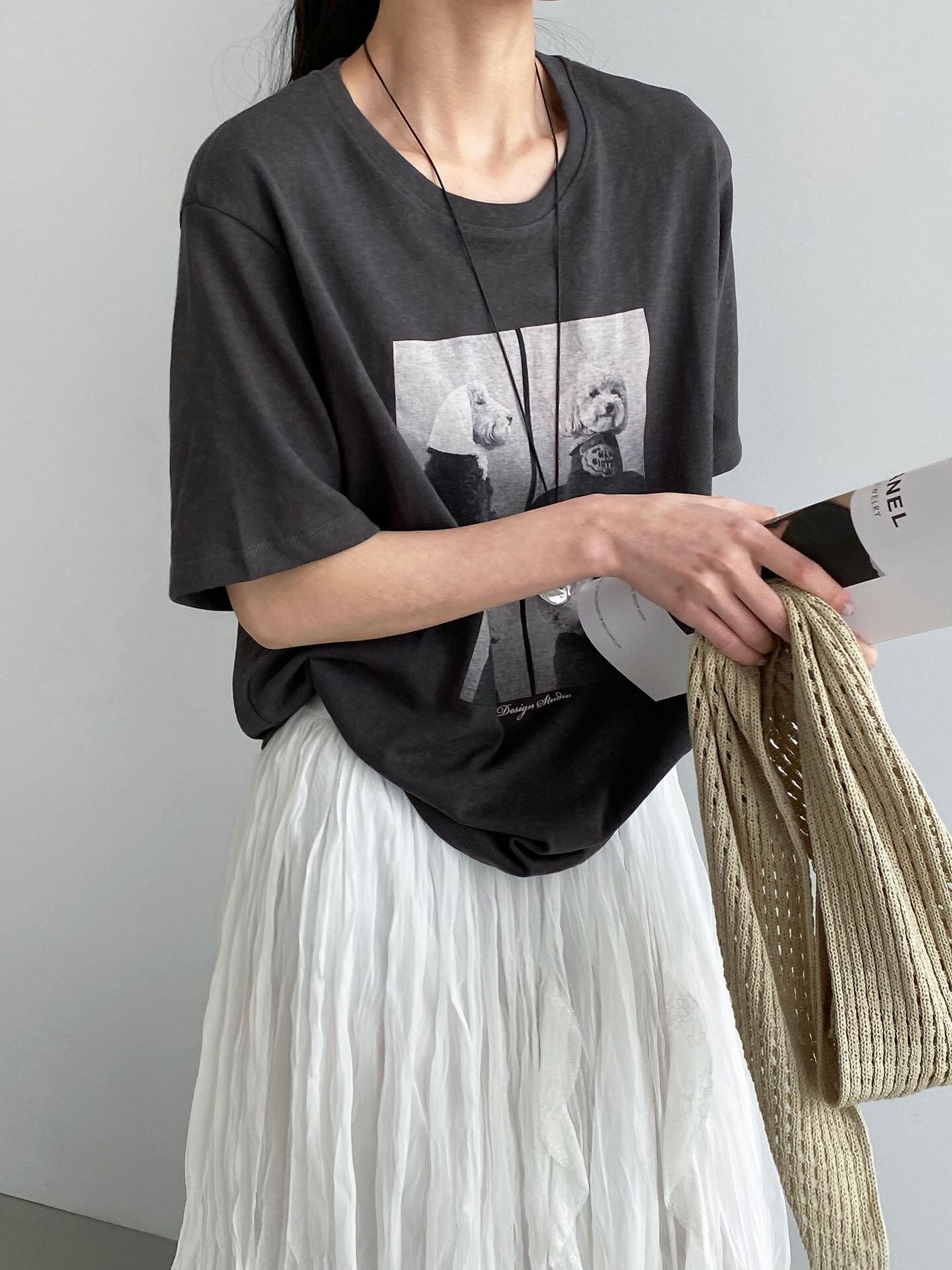 バストの犬モチーフが大人可愛いシンプルなtシャツ。
