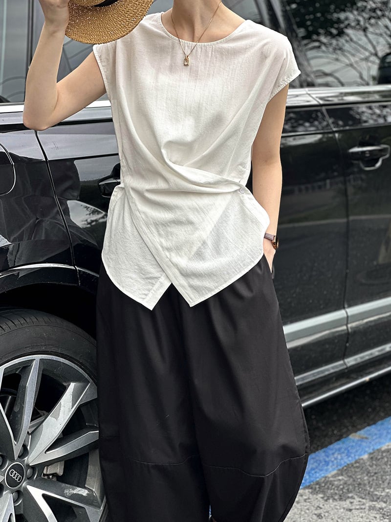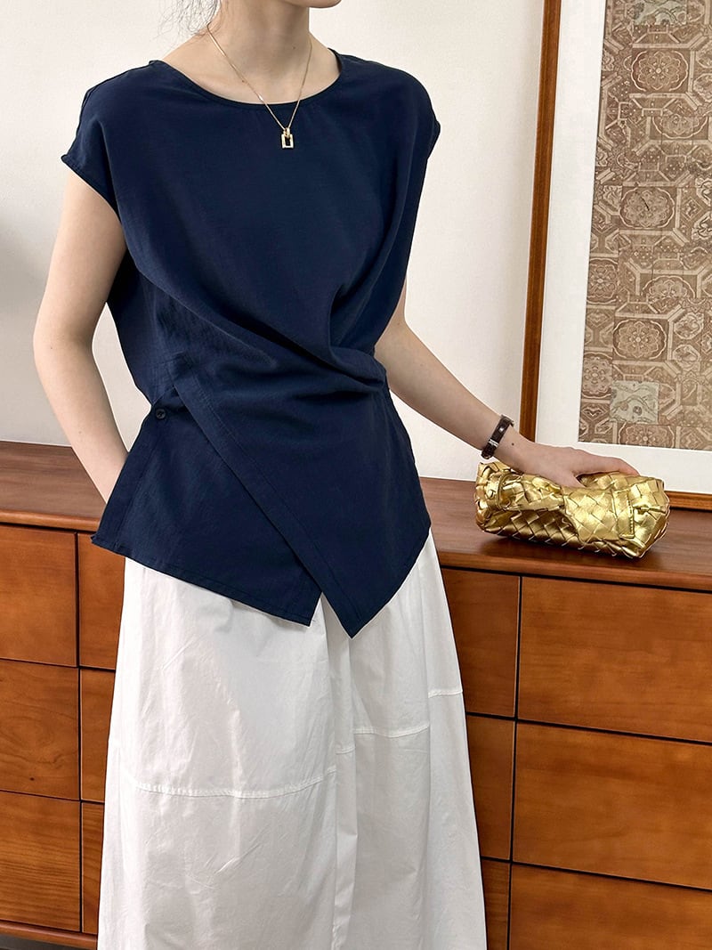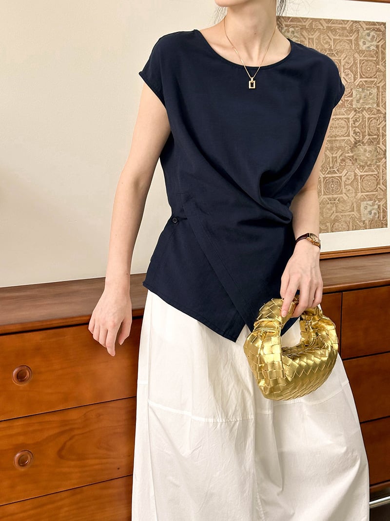 コットンリネン素材で真夏でも涼しく着れる1着。