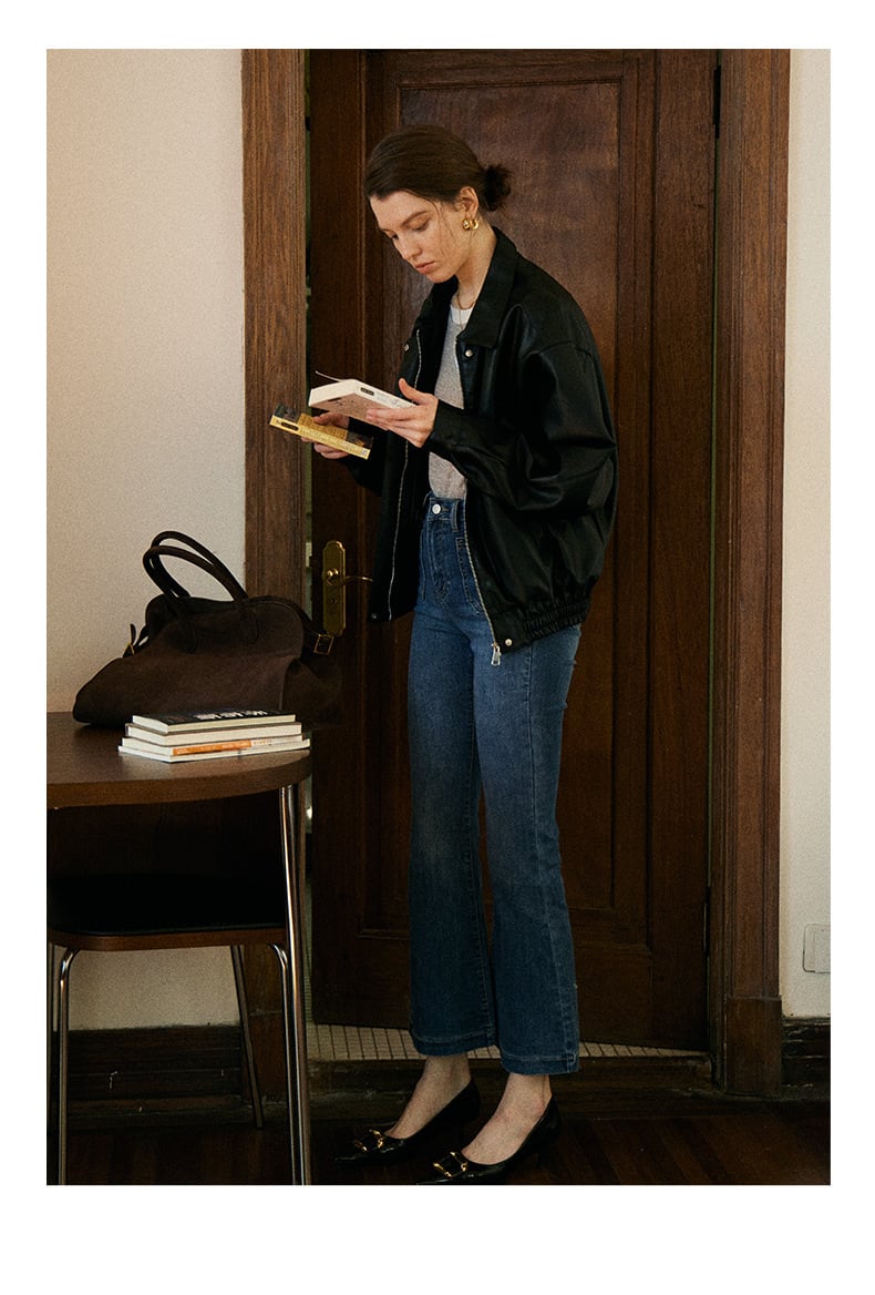 きれいめに着こなせるフレアデニムパンツ。