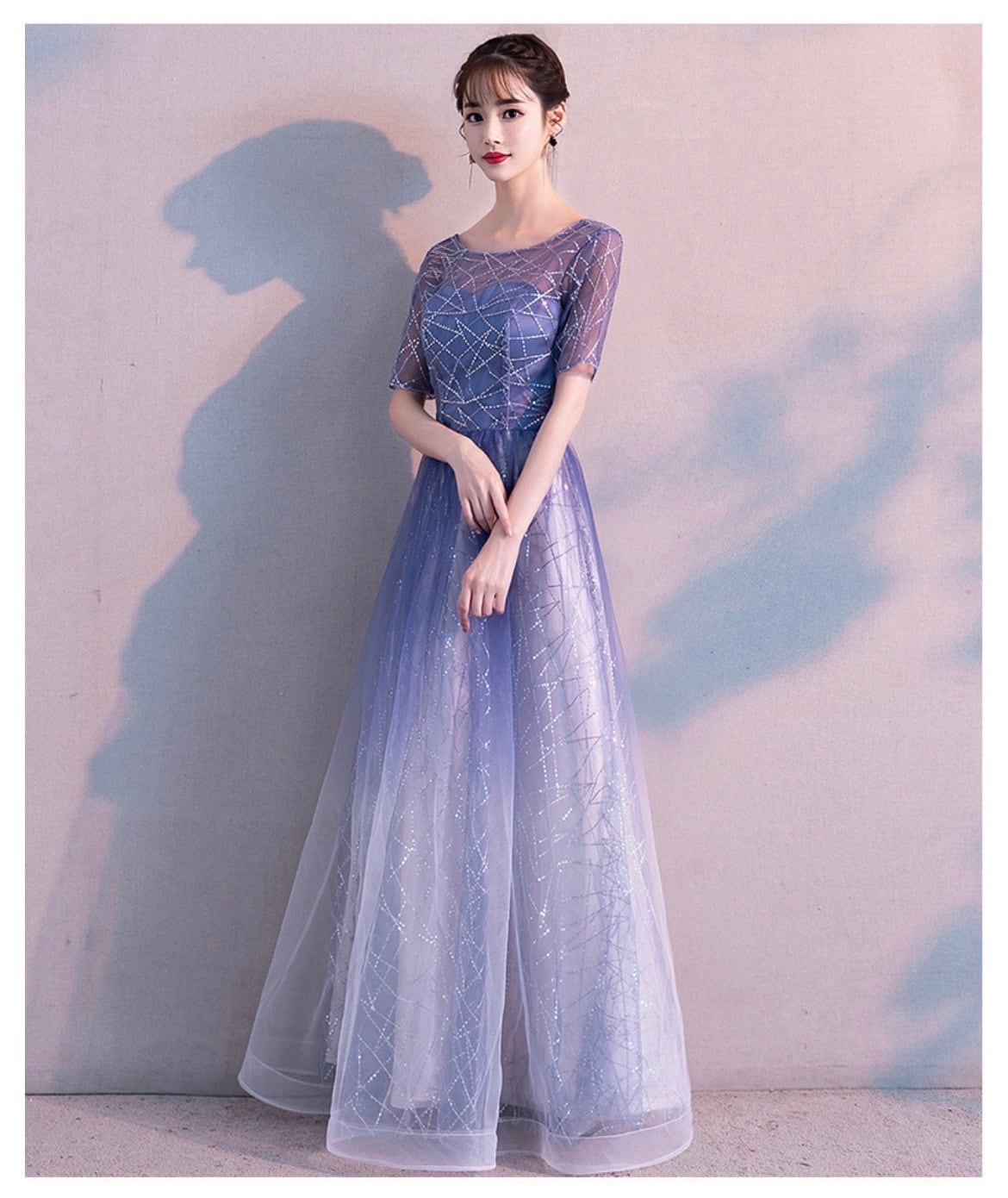 グラデーションカラーが大人っぽさを引き立たせるパーティードレス。
