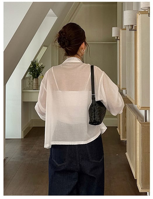 シアーな素材感で涼しげな印象を与え、オフィスやカジュアルなお出かけにもぴったり。