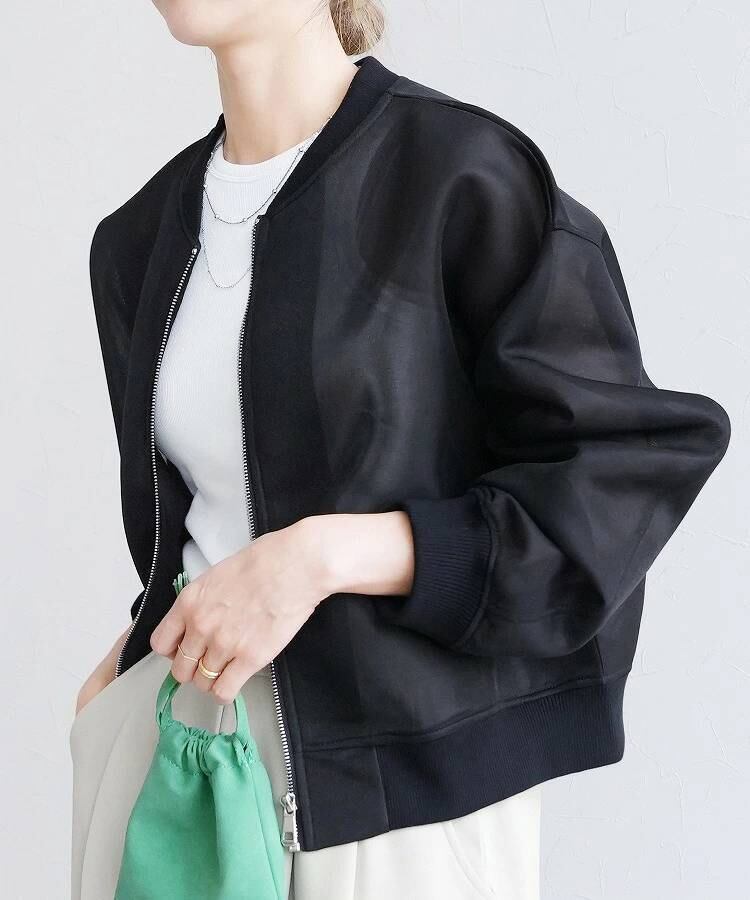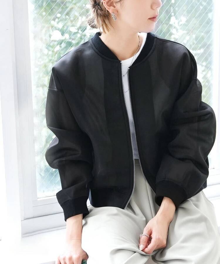 シアーな透け感が目を惹くショート丈のMA-1ジャケット。