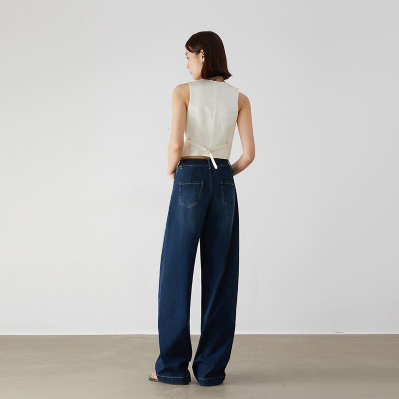 【デニム】 小さいサイズ 大きいサイズ デニムパンツ レディース きれいめ 春 夏 秋 冬 20代 30代 40代 50代 ジーパン パンツ ワイドパンツ ハイウエスト ワイド パンツ ネイビー 青 XS S M L XL 2XL