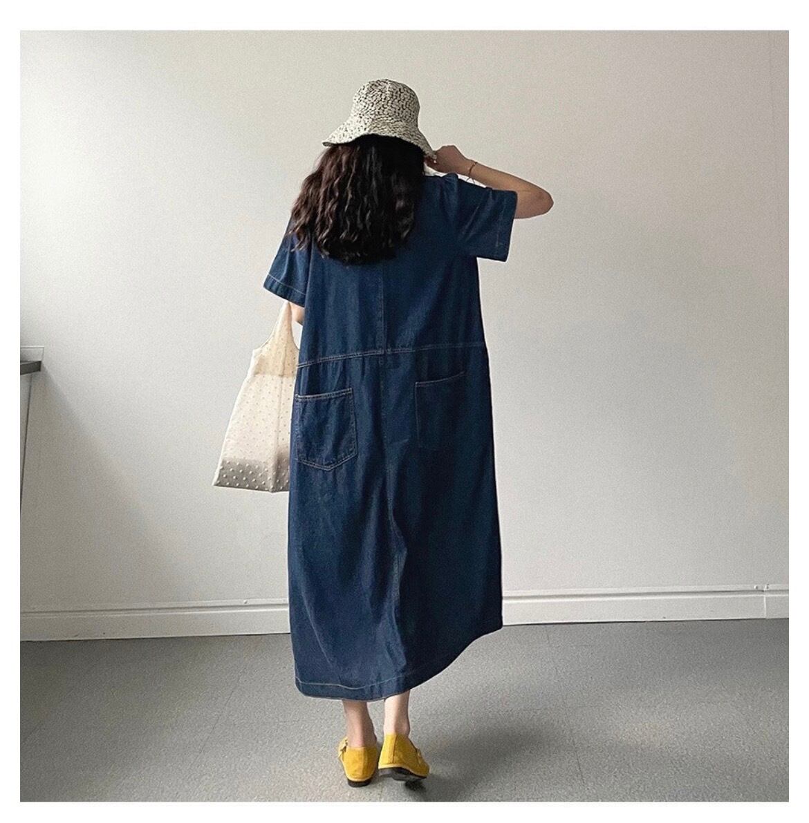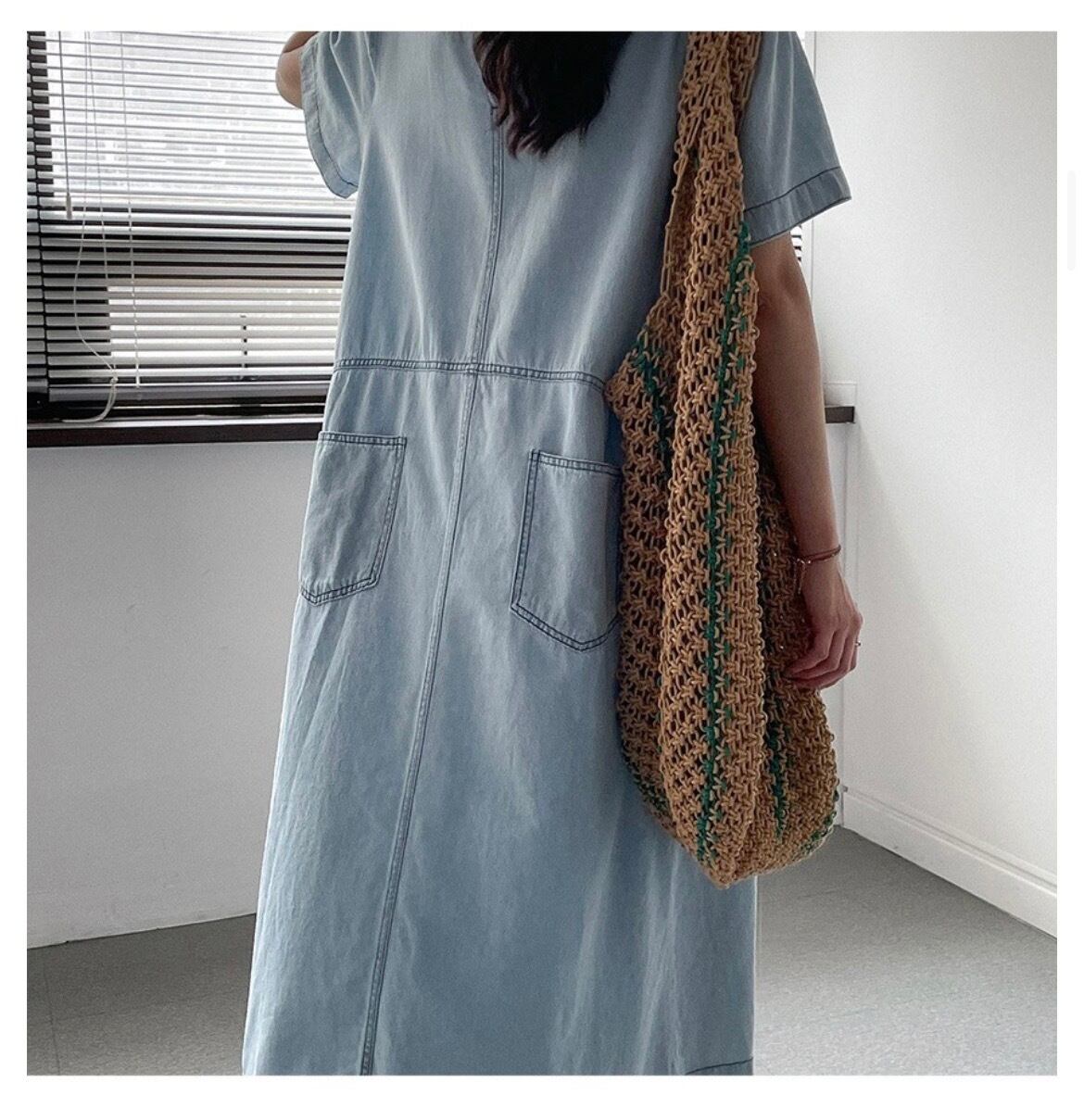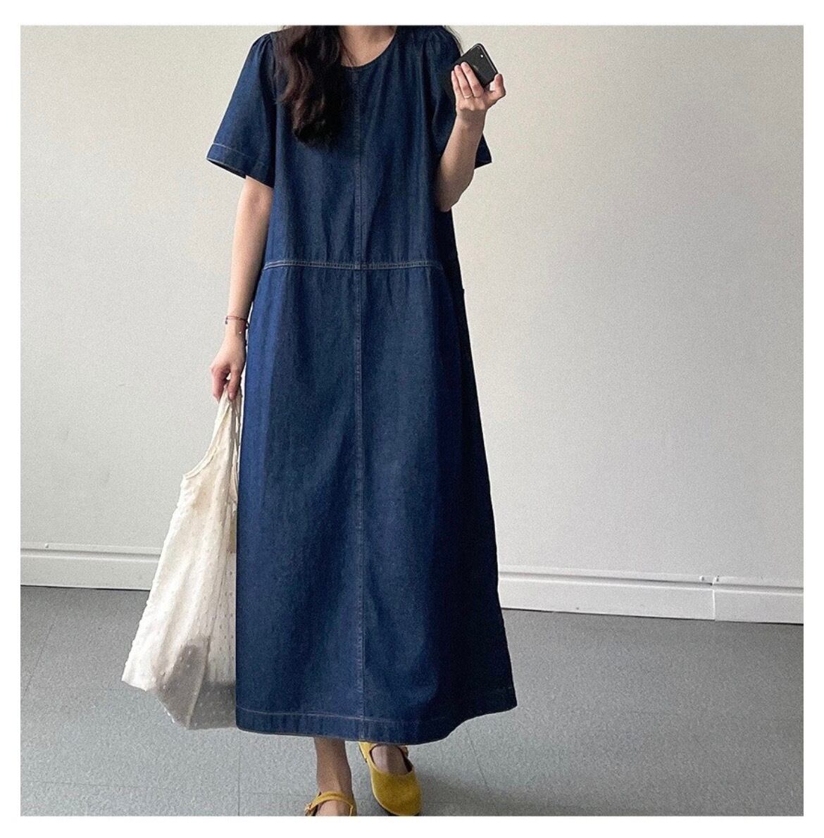 大人可愛いコットン素材のデニムワンピース。