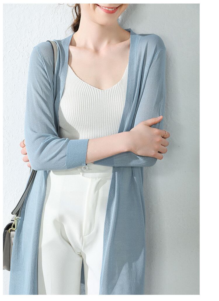おしゃれでフェミニンなロング丈シアーカーディガン。