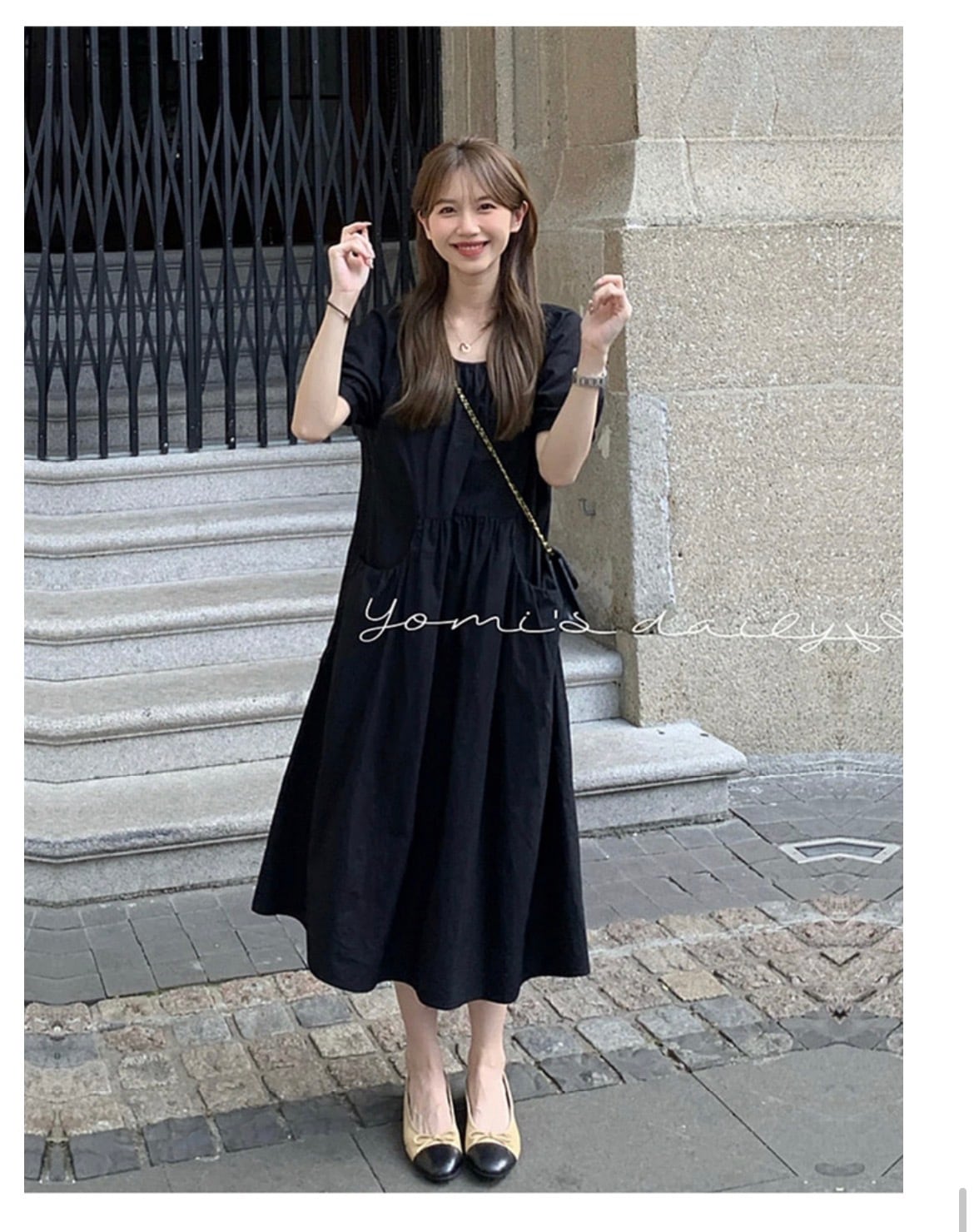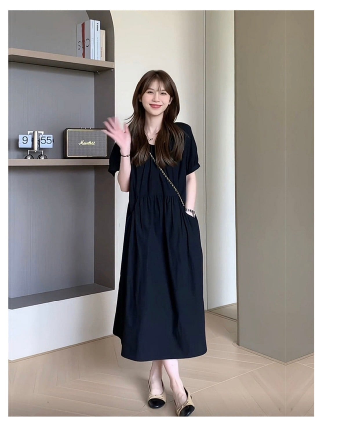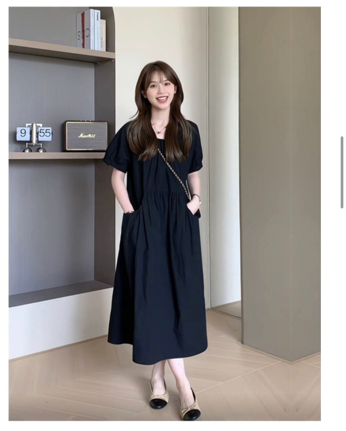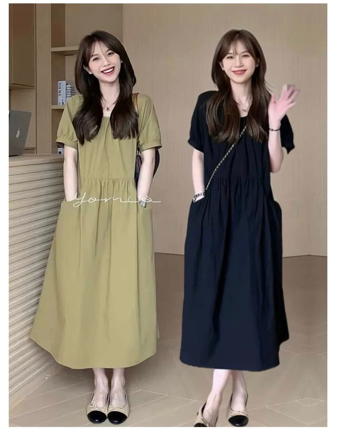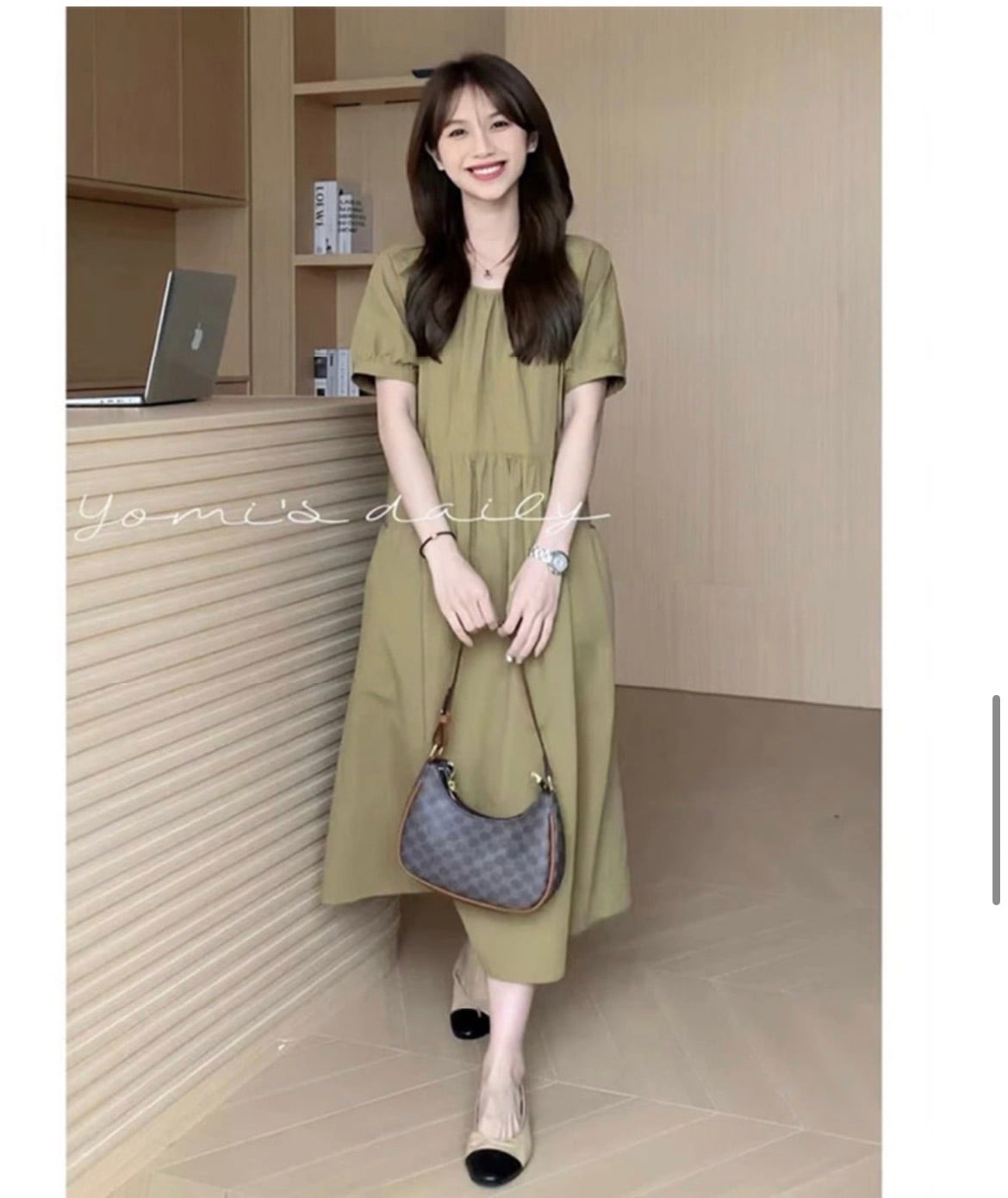 このワンピースは、ボディラインをひろわないエレガントでフェミニンなデザインが特徴。