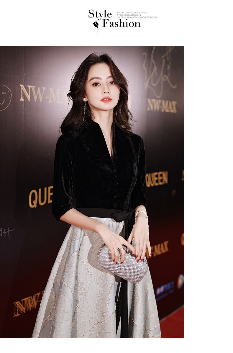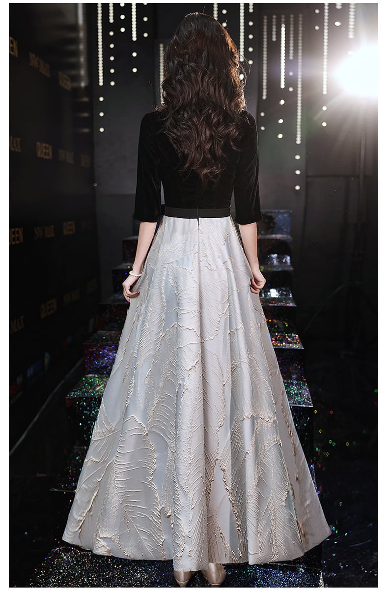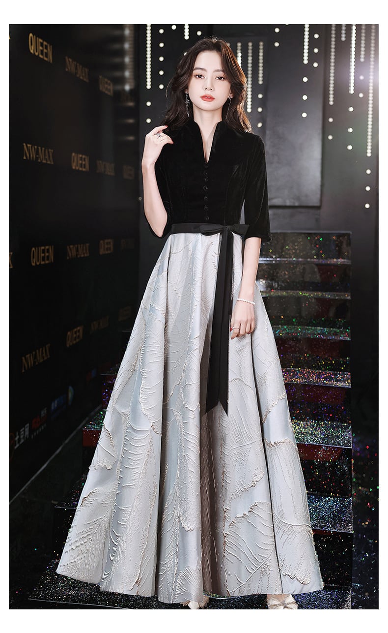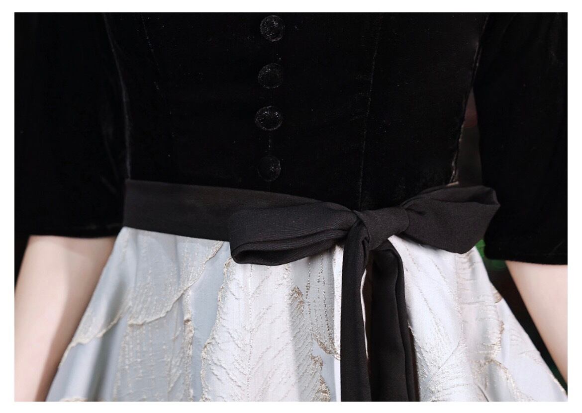 エレガントなバイカラーのジャガード織を使用したパーティードレス。