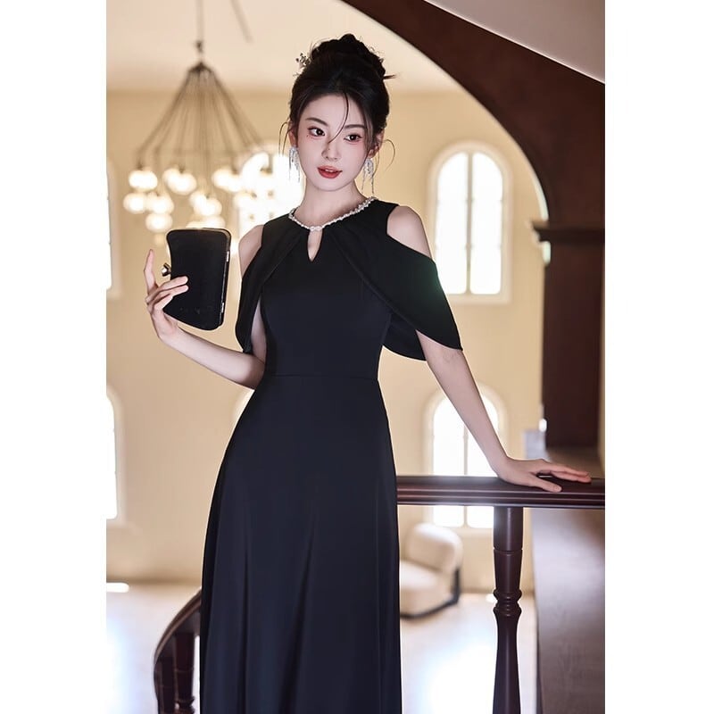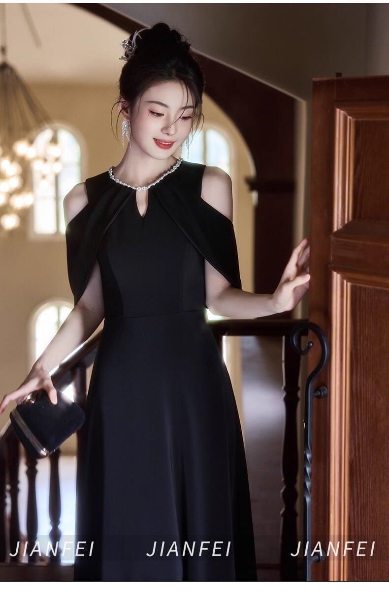ヘルシーな肌見せが叶うオープンショルダーのパーティードレス。
