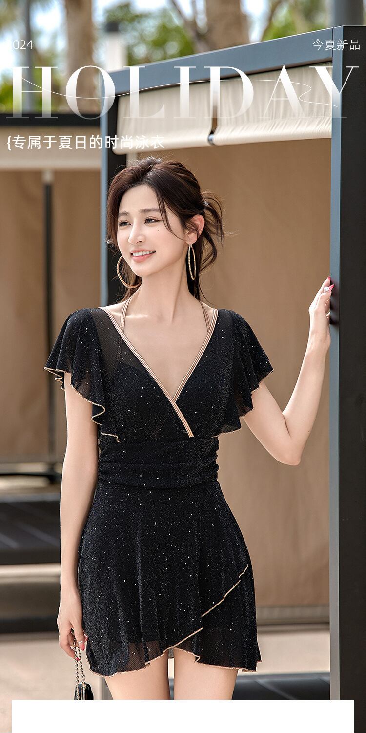 お袖のフリルが大人可愛いバイカラーのワンピース水着!