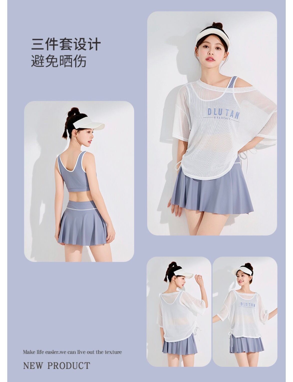 【水着】大きいサイズ 韓国 水着 タンキニ 体型カバー ラッシュガード レディース 水着 3点セット 可愛い かわいい おしゃれ 20代 30代 40代 50代 ママ 水着 スカート 海 ビーチ プール リゾート スイムウェア ブルーパープル 紫 XL 2XL