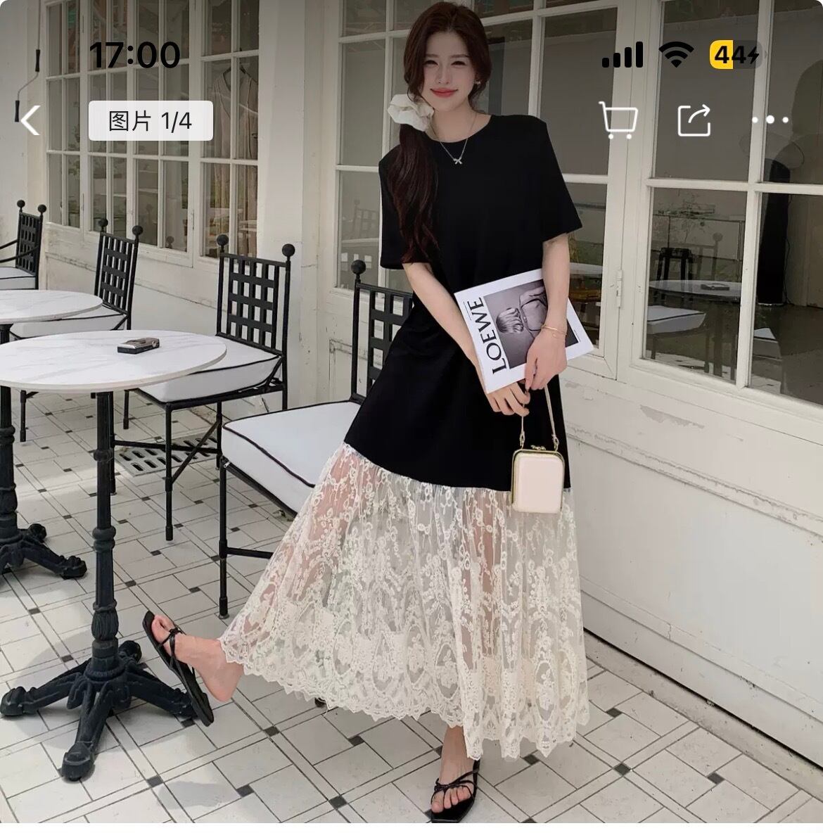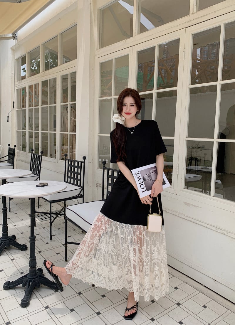 レース切り替えが目を惹く大人エレガントなワンピース。