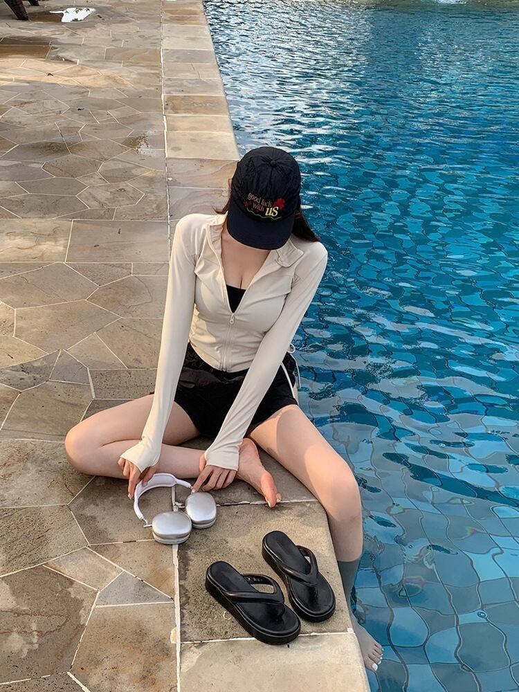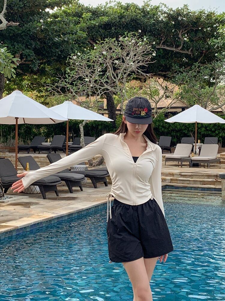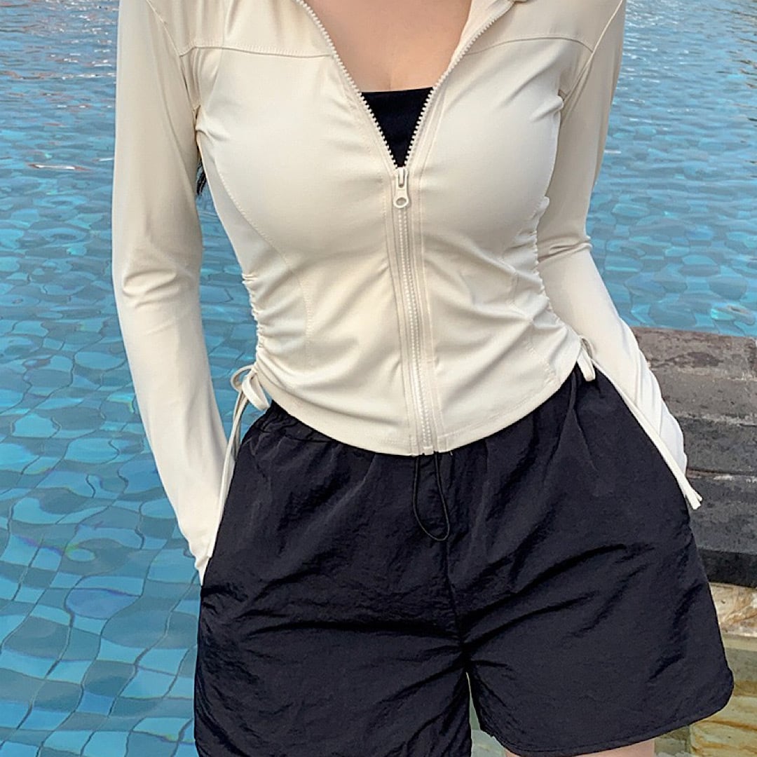 ラッシュガード付きで体型カバーをしつつも可愛さを演出します。