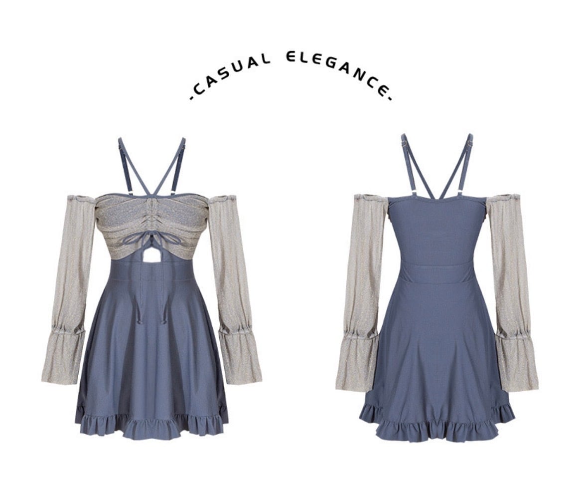 シアーなお袖付きで華やかさを添えつつ、体型カバーも叶える優れもの。