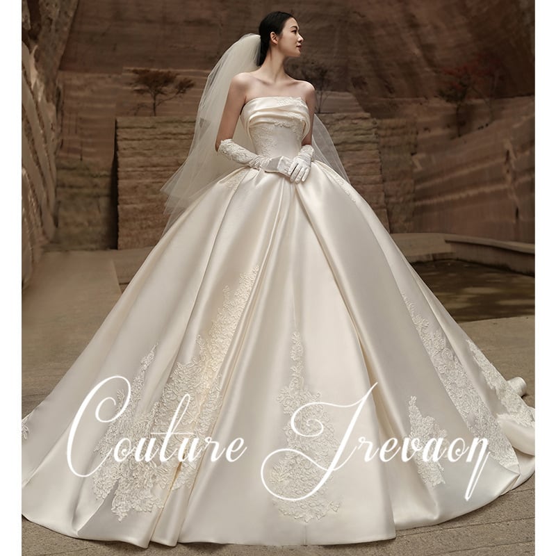 ベアトップでバストラインを美しく見せ、全ての角度から素敵に演出。