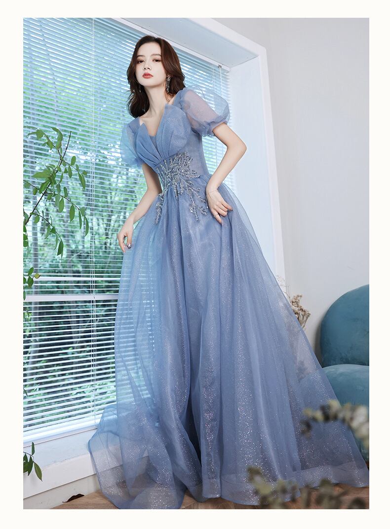 エレガントで上品な印象を与えるパフスリーブデザインが特徴で、フォーマルな場面でも活躍します。