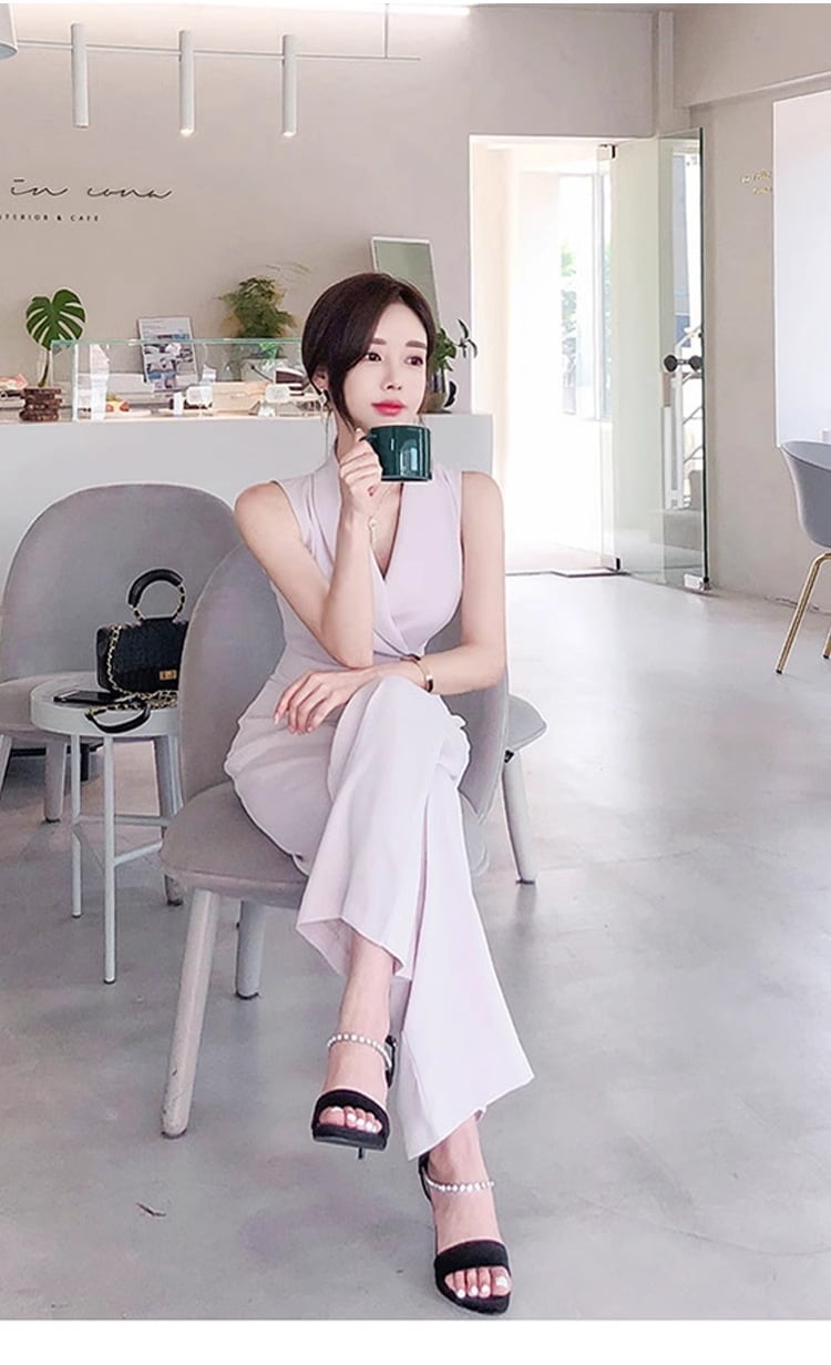 大人エレガントなカシュクールデザインのパンツドレスが新登場です!