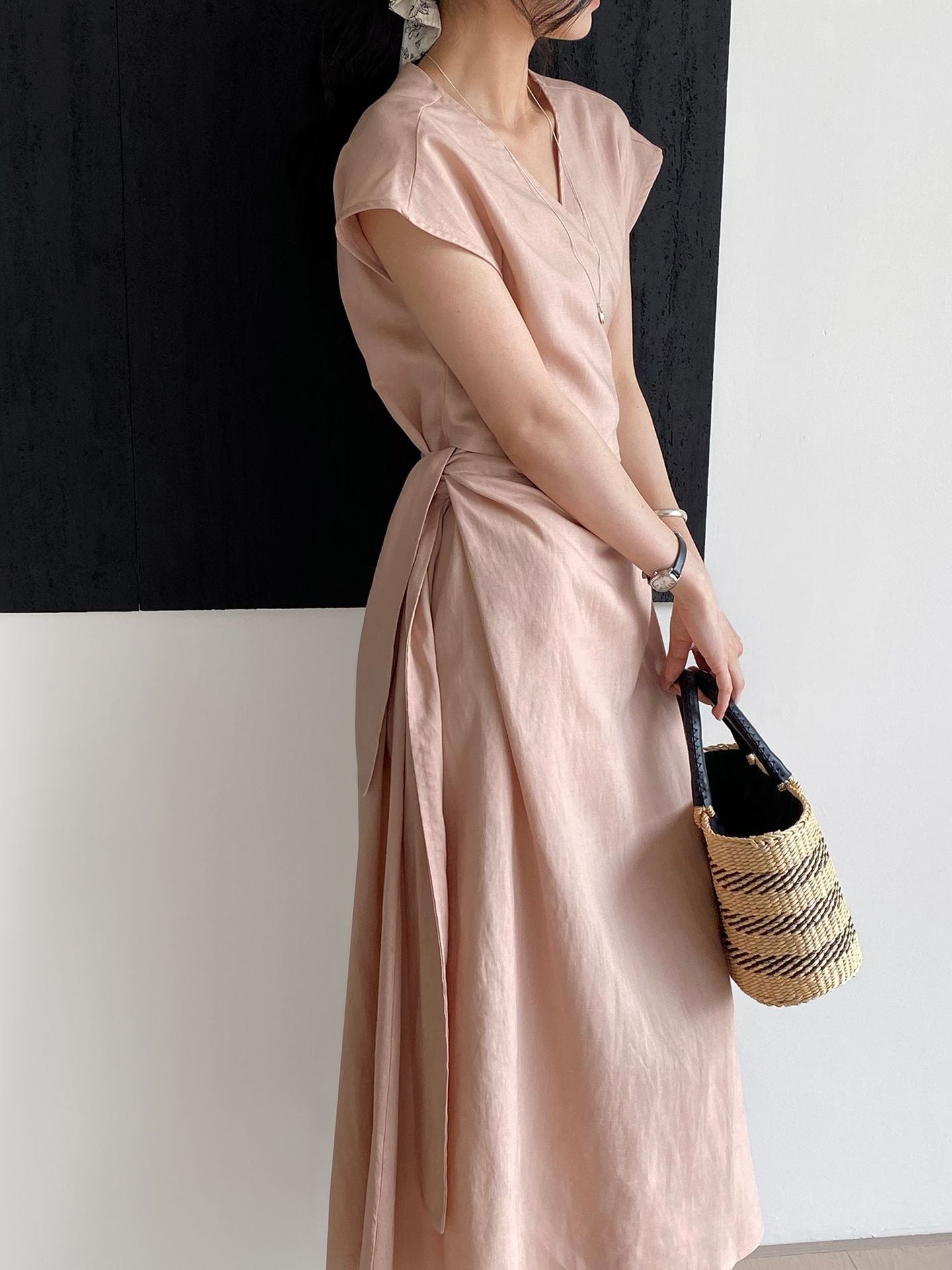 大人カジュアルなコットンリネン素材のカシュクールワンピースが新登場です!