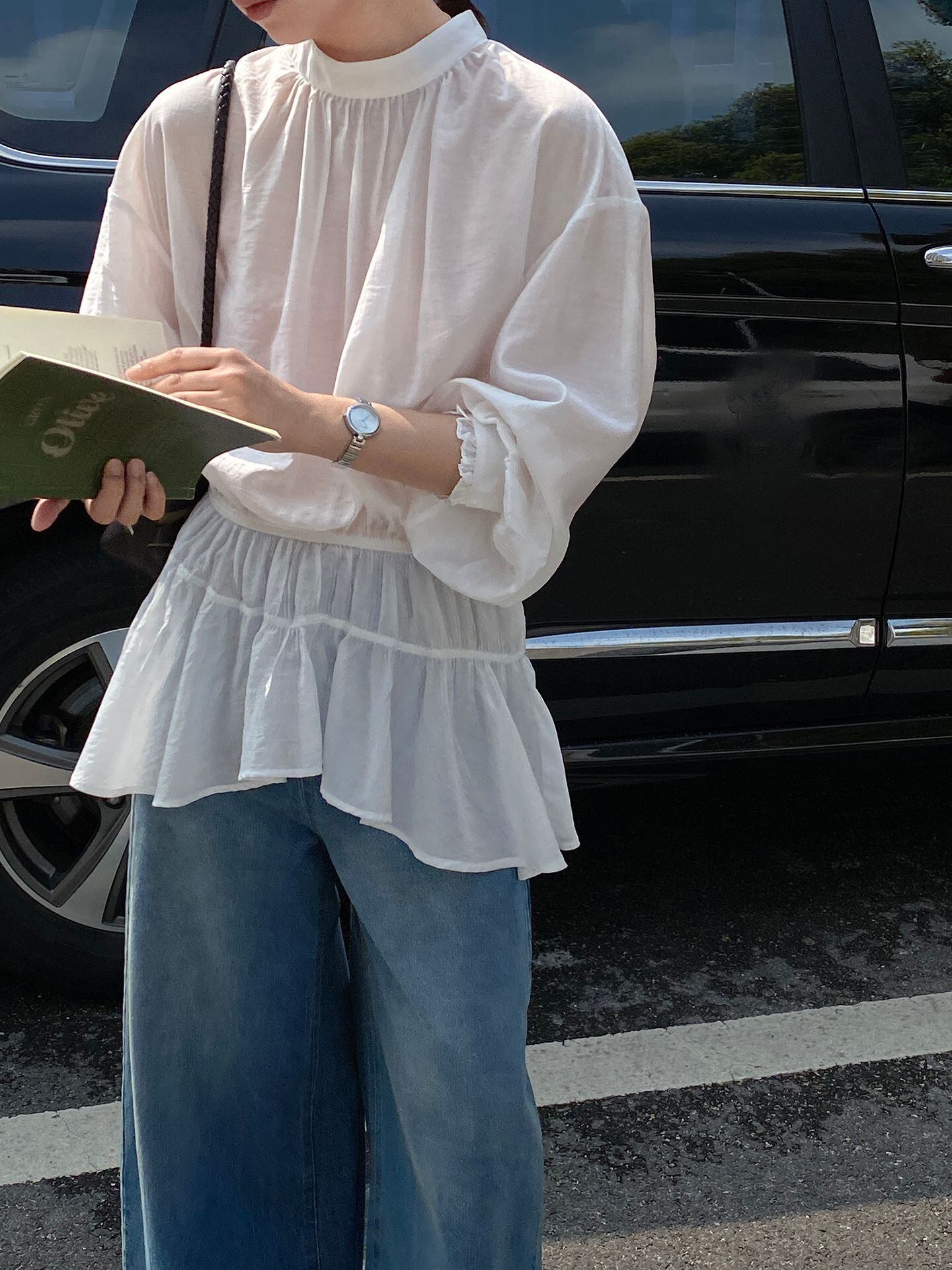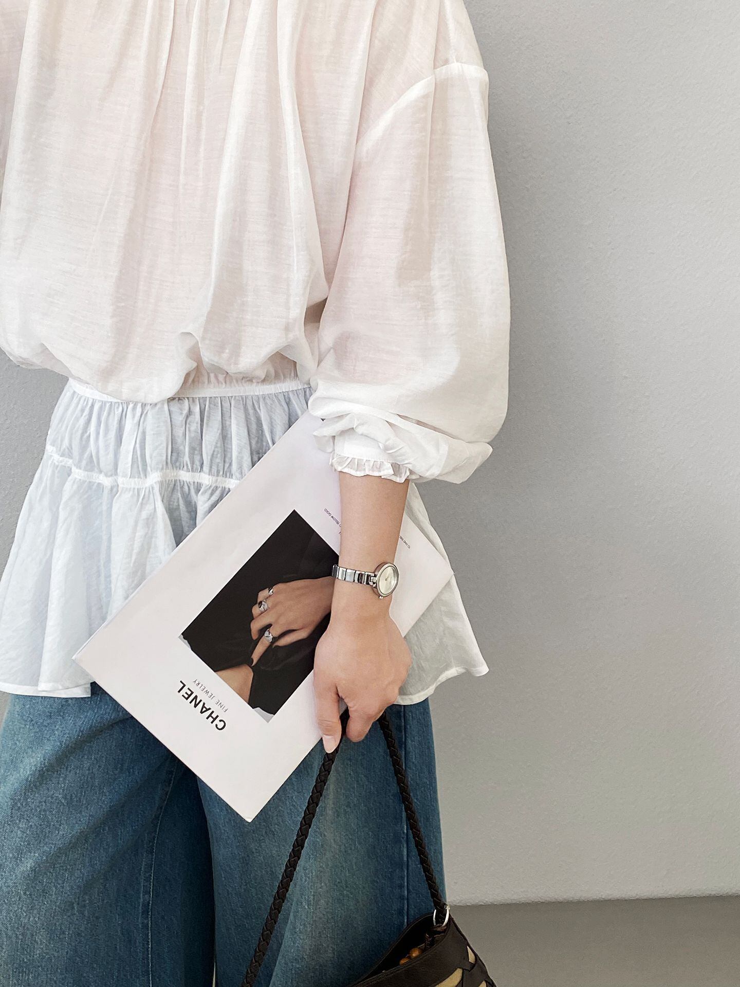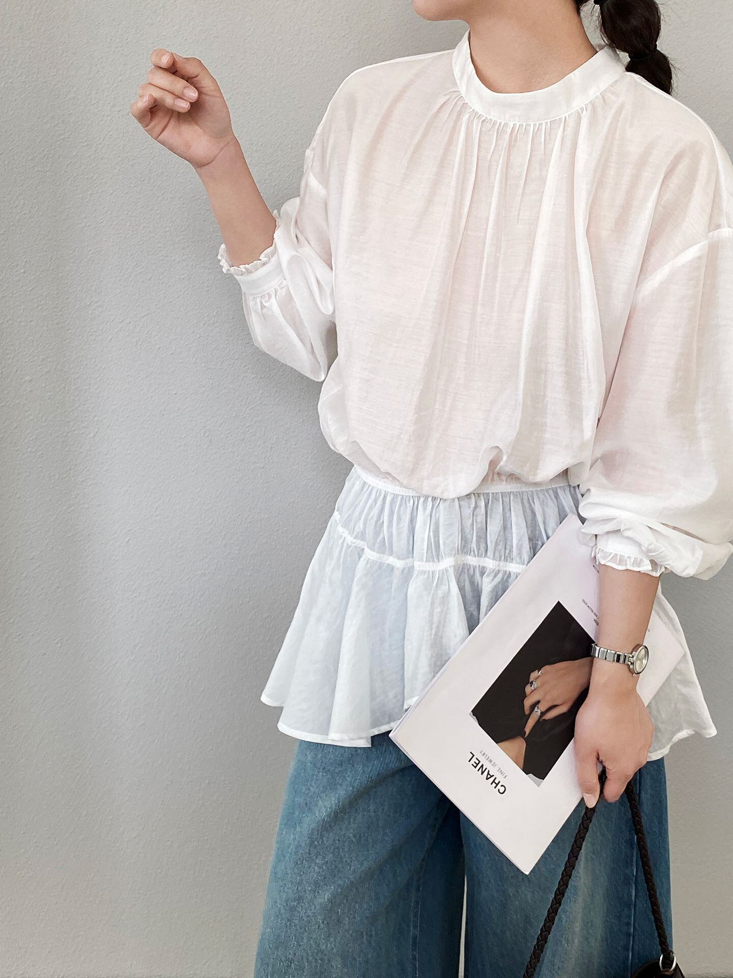 お腹まわりを優しく体型カバーしてくれるこのブラウスは、20代から50代までの幅広い世代の方にフィットします。