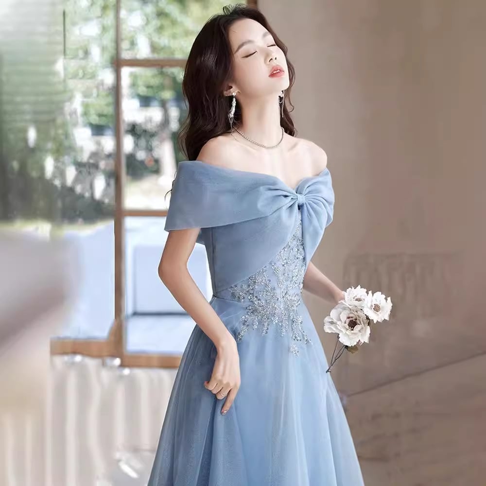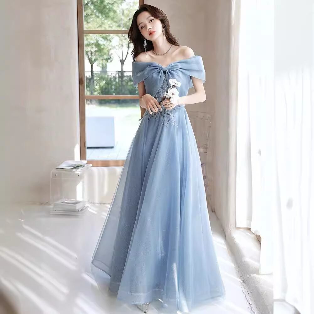 洗練された大人の女性にぴったりのシックなブルーカラーのaラインカラードレスが登場です!