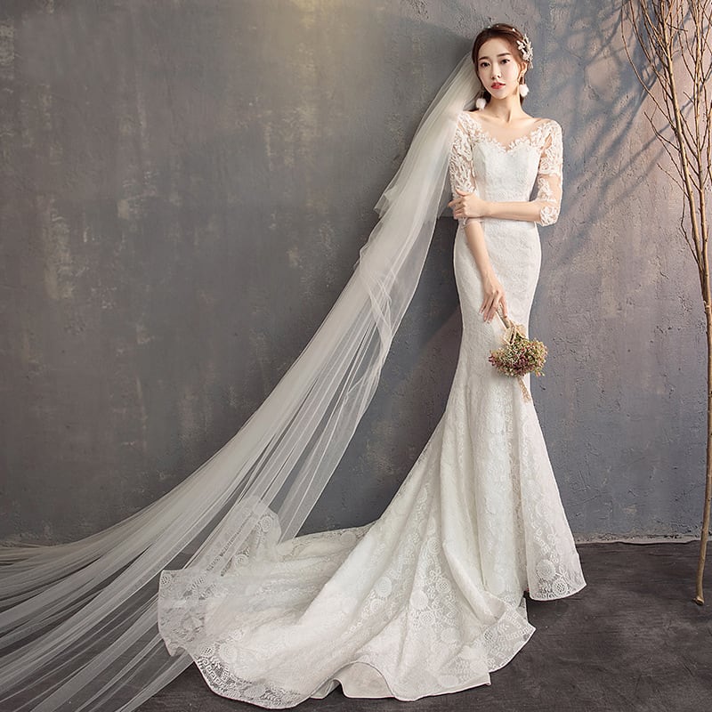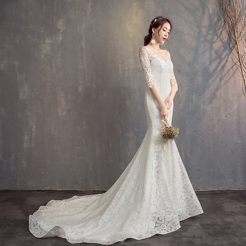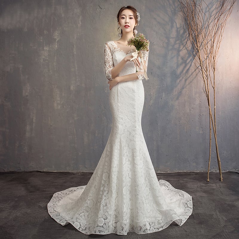 【ウェディングドレス】大きいサイズ 小さいサイズ ウェディングドレス マーメイド 袖あり ホワイト 白 結婚式 挙式 シンプル 20代 30代 40代 カジュアルウェディング フォトウェディング ドレス 前撮り 後撮り 結婚式写真 ナチュラル ウェディング ガーデンウェディング 少人数ウェディング ホワイト ロング レストランウェディング リゾートウェディング カジュアルウェディング