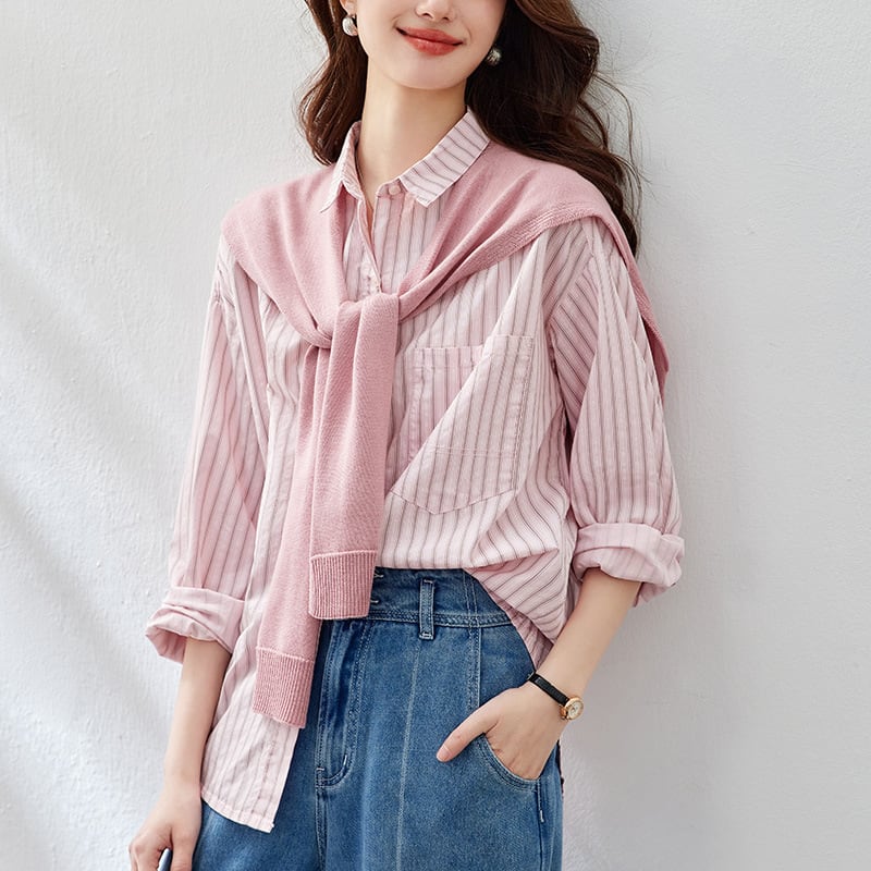 【シャツ】 大きいサイズ シャツ レディース おしゃれ ブルー 大人 可愛い トップス シャツ ブラウス 韓国 ブラウス 春 夏 秋 20代 30代 40代 50代 シンプル オフィス レディース フォーマル 体型カバー きれいめ 長袖 ストライプ ピンク ブルー 青