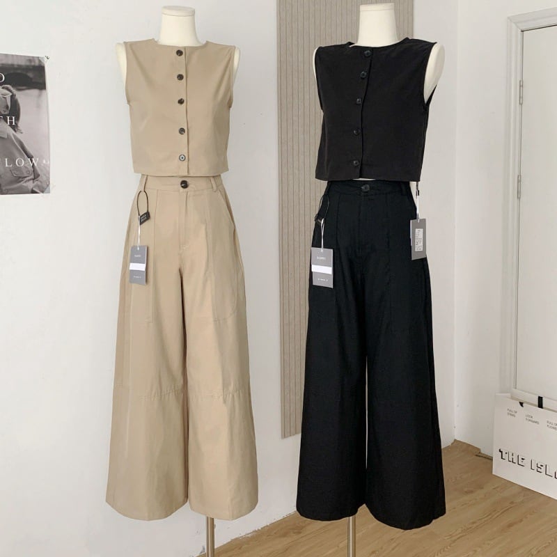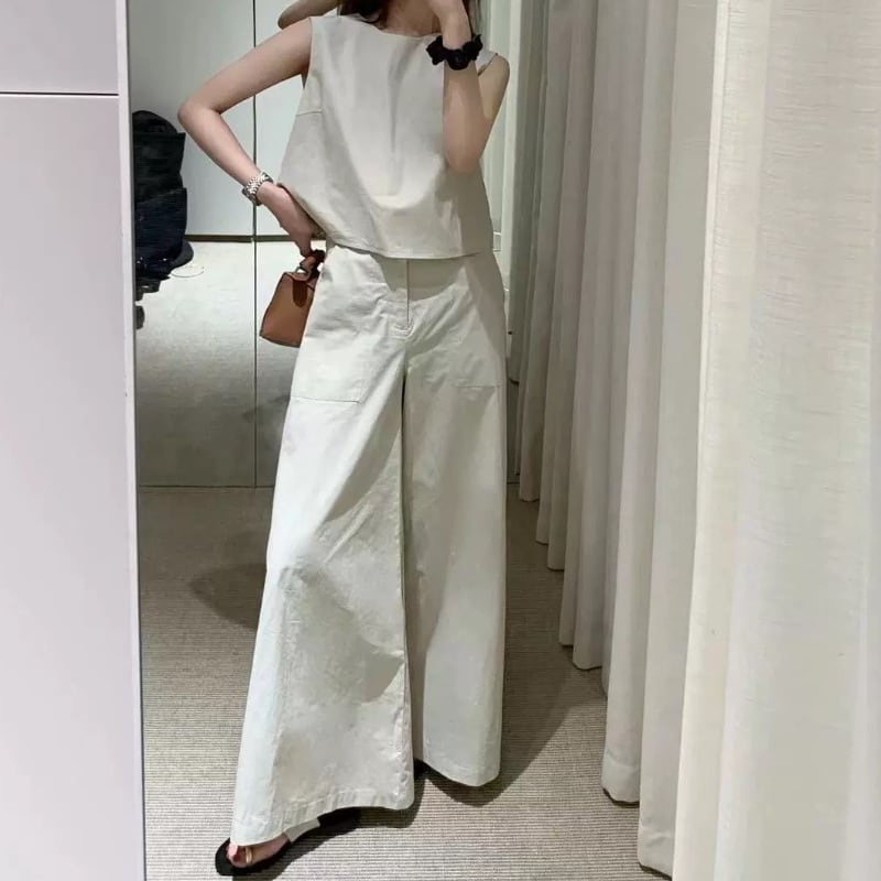 大人カジュアルなスタイルを実現する、ノースリーブシャツとワイドパンツのセットアップが新登場です!