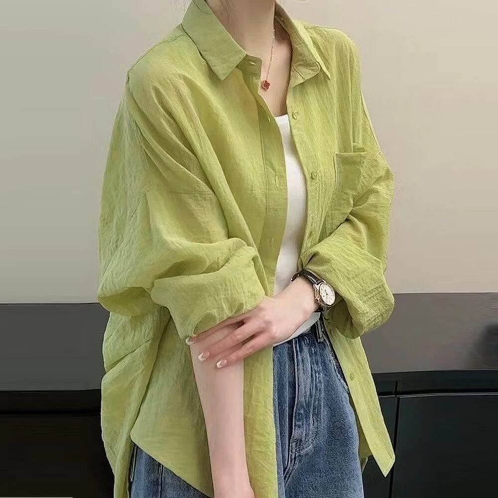 【シャツ】 シャツ レディース おしゃれ グリーン 大人 可愛い トップス シャツ ブラウス 韓国 ブラウス 春 夏 秋 20代 30代 40代 50代 シンプル オフィス レディース フォーマル 体型カバー きれいめ 長袖