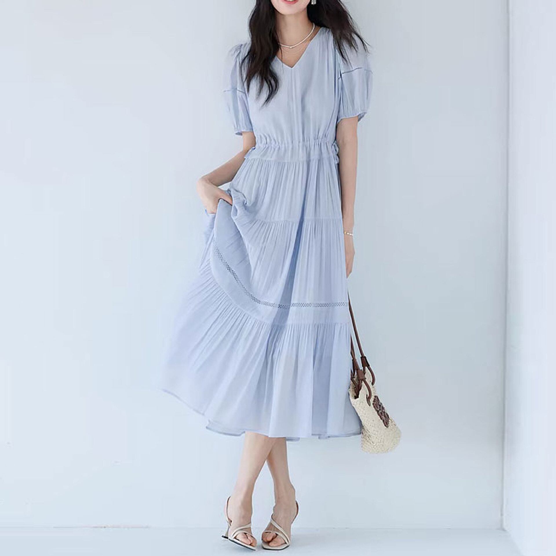 【ワンピース】 ワンピース レディース 夏 20代 30代 40代 50代 おしゃれ きれいめ 可愛い フェミニン エレガント 春 夏 秋 20代 30代 40代 50代 ミモレ ワンピース 春夏 ワンピースドレス 韓国 ワンピースドレス ワンピース ベージュ ブルー 青 S M L XL