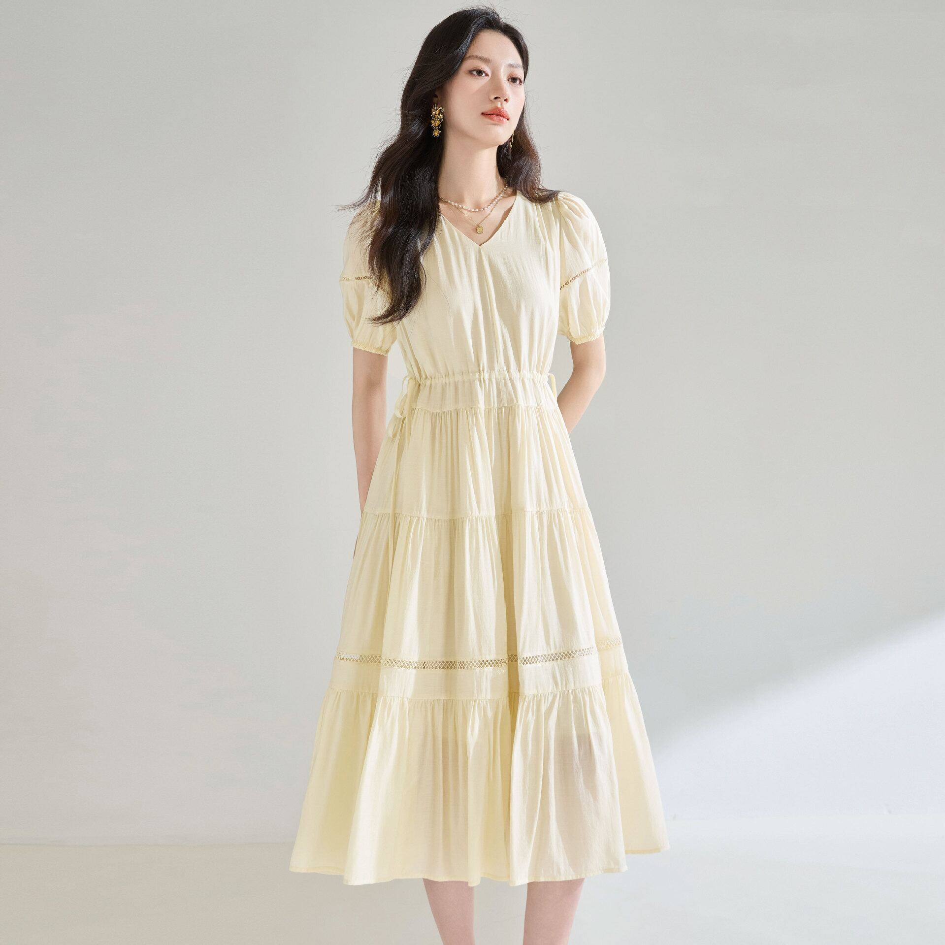 春夏秋のシーズンにぴったりの、シンプルでおしゃれなティアードワンピースが登場です!