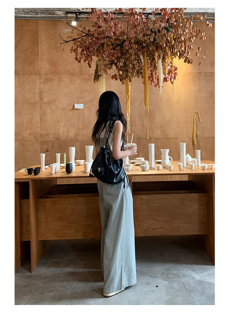 シンプルながらもきれいめなデザインで、ノースリーブのハイウェストとワイドパンツが魅力的なシルエットを実現✨
